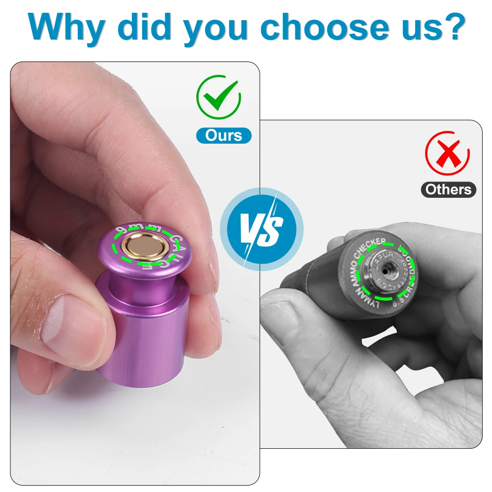 4. 【Fácil de usar】 Las damas de munición son medidores que permiten que un recargador confirme rápidamente que sus municiones encajen en su cámara.Simplemente deje caer sus rondas cargadas en el comprobador de munición y, si la ronda encaja en el medidor, encajará en la cámara del arma.Cada calibre está claramente grabado en el calibre.