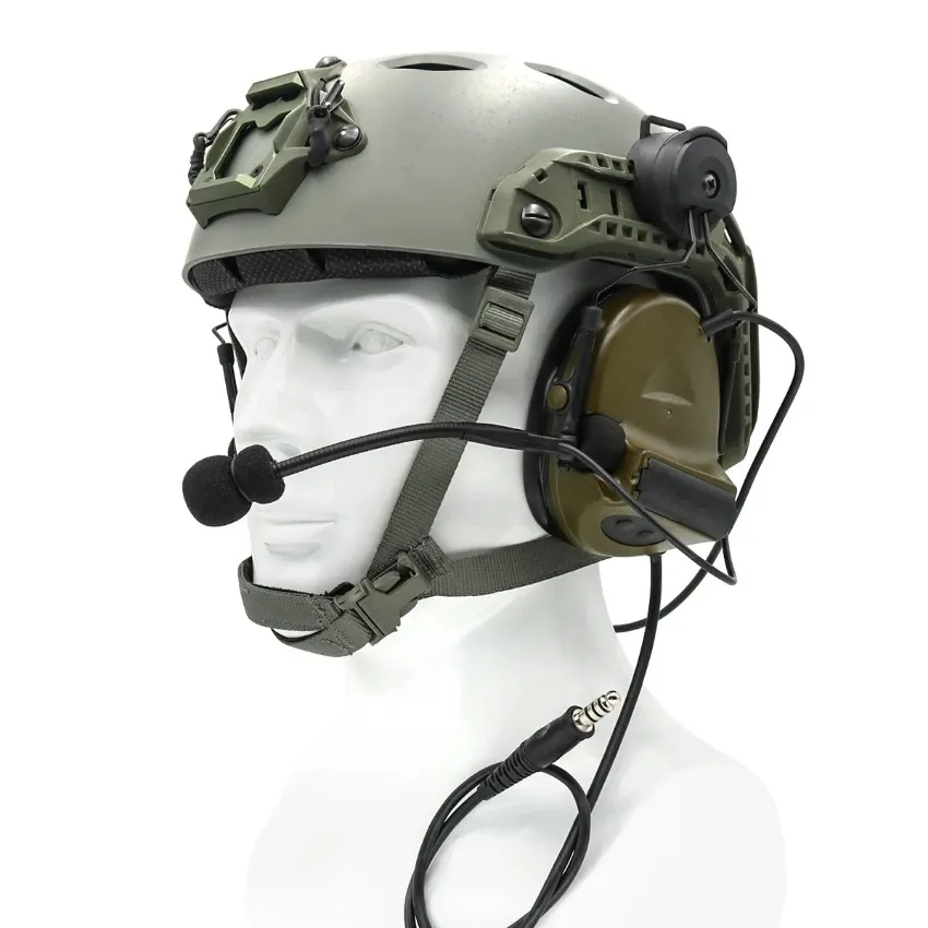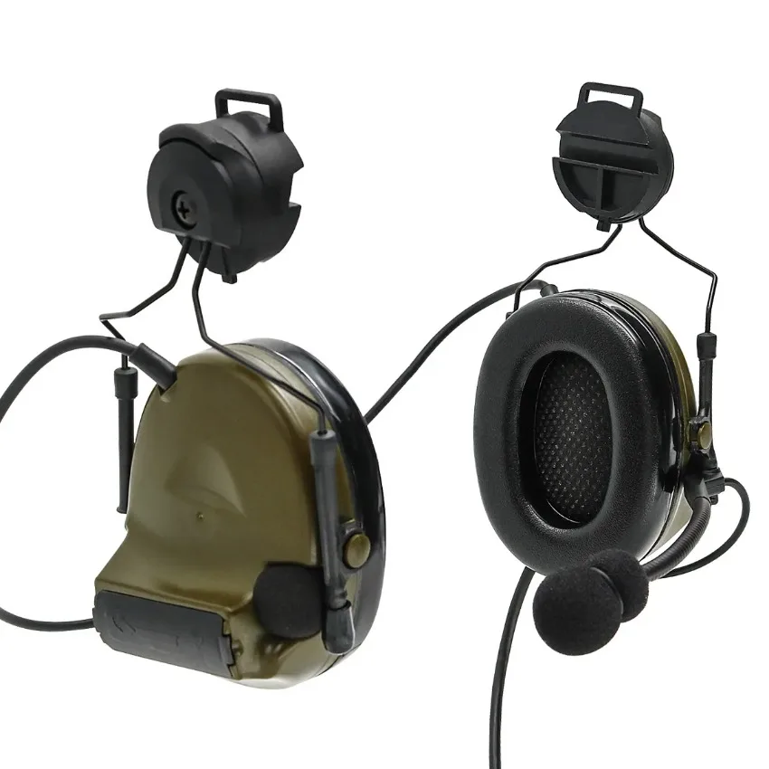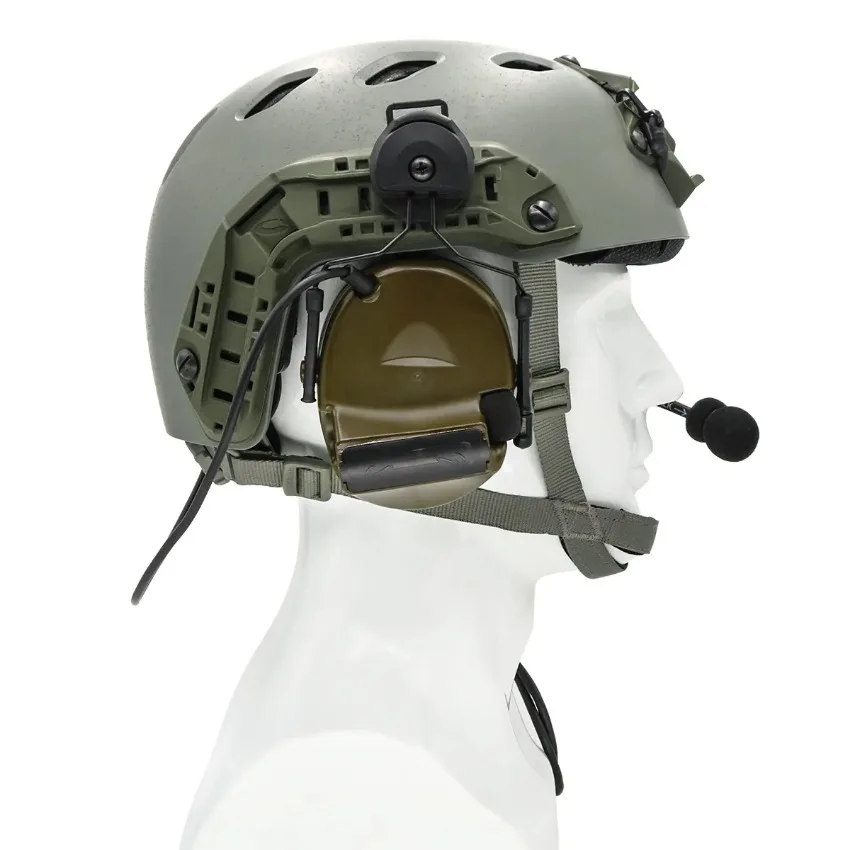 La versión de casco de auriculares COMTAC II satisface las demandas de equipos de bricolaje para deportes airsoft. Cómo montar: Alinear el carril del casco y deslizarlo en su lugar