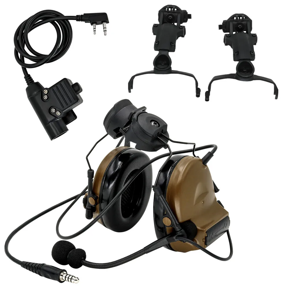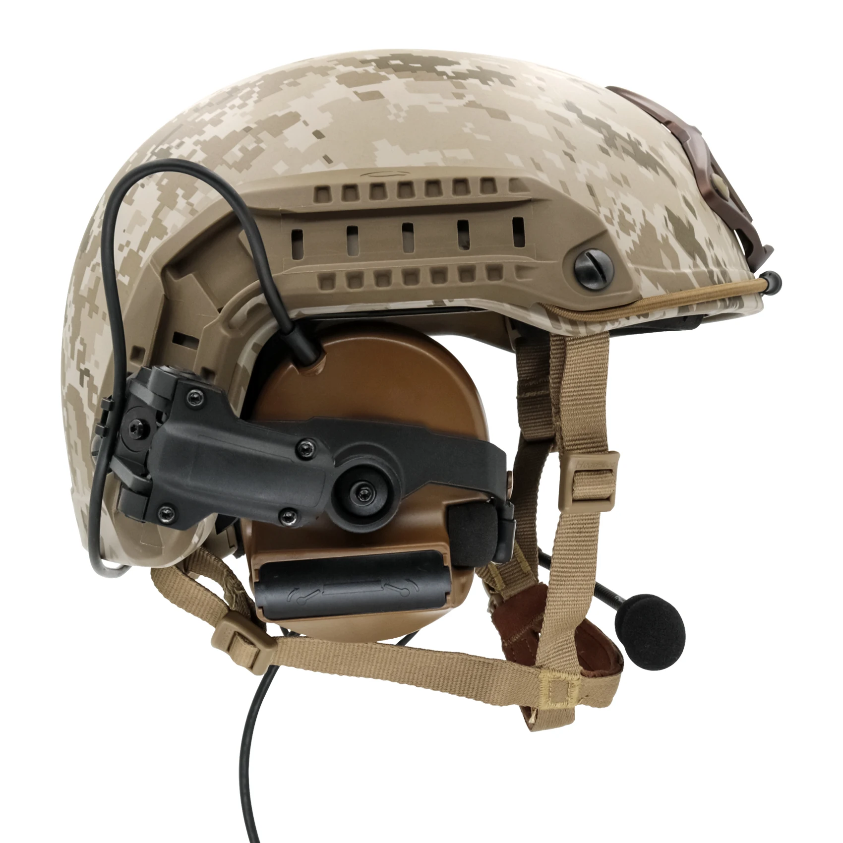 La versión de casco de auriculares COMTAC II satisface las demandas de equipos de bricolaje para deportes airsoft. Cómo montar: Alinear el carril del casco y deslizarlo en su lugar