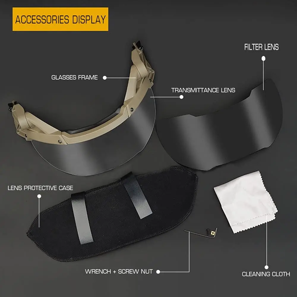 ▶The package includes: 1* goggles (replaceable lenses), 1* glasses cloth, a set of screws and wrenches, 1* lens cover