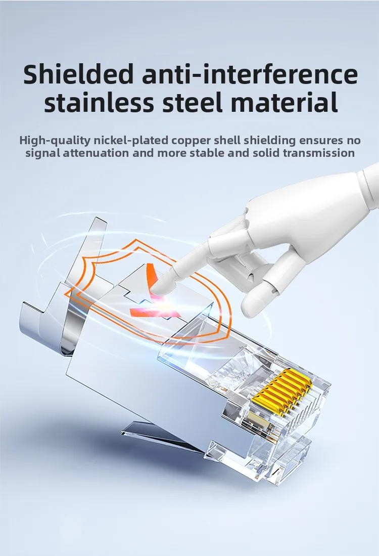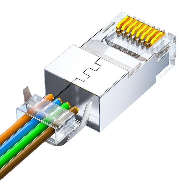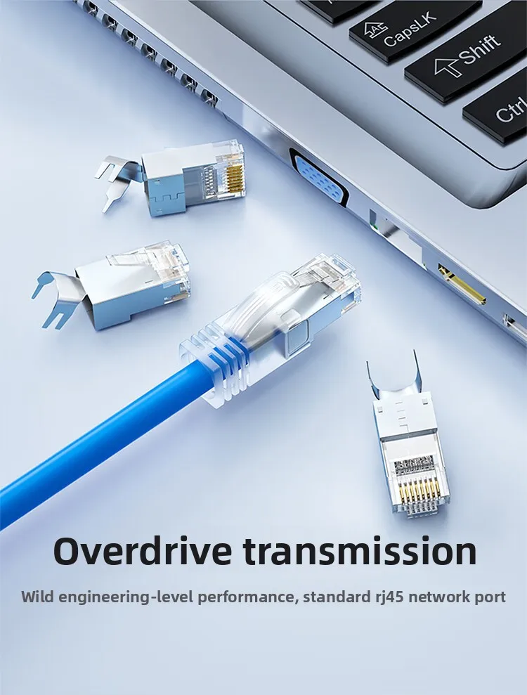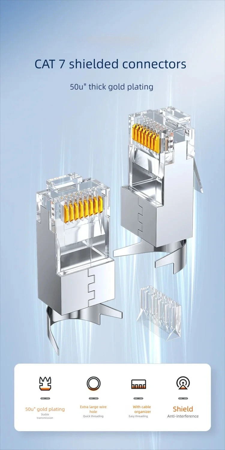 Conector de red FTP RJ45 blindado chapado en oro de dos piezas CAT7 para 10 Gbps