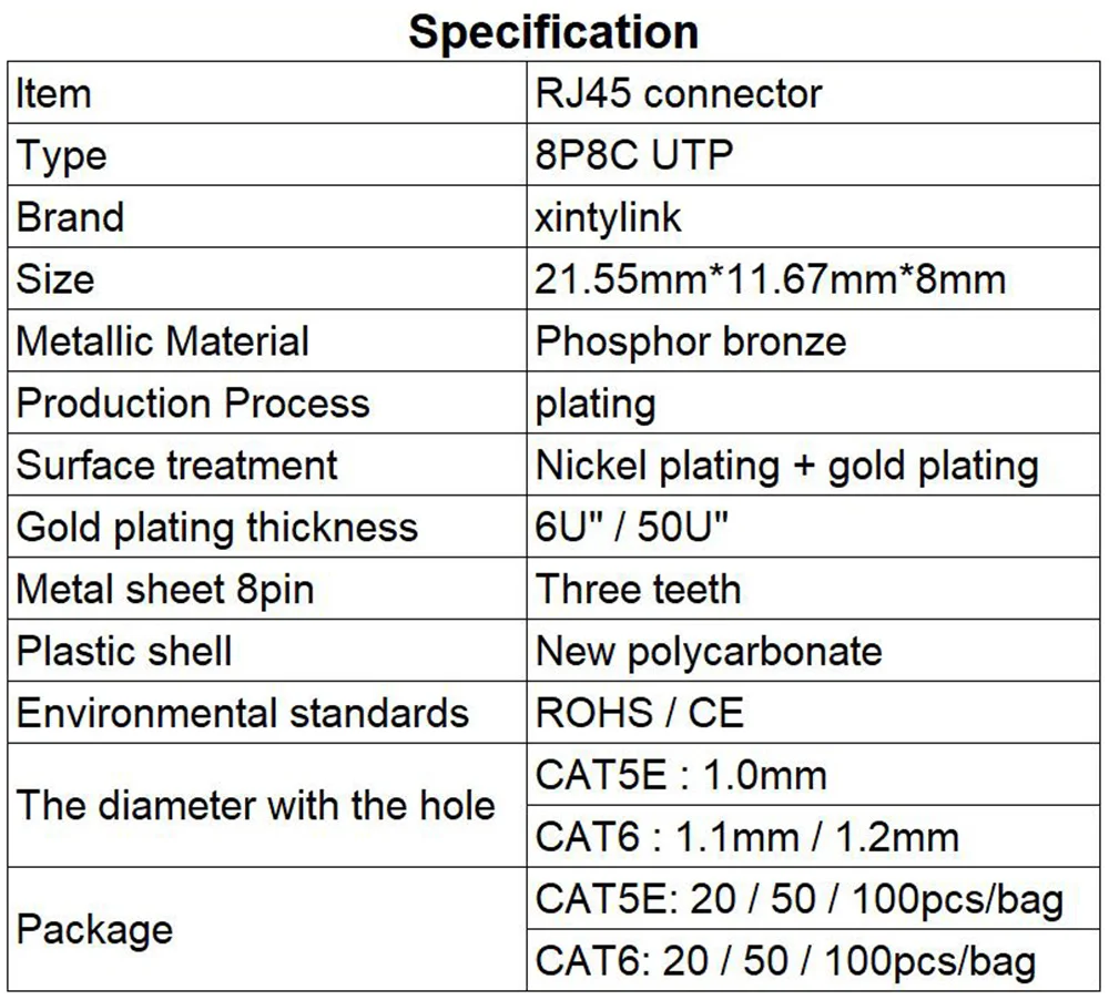 Siempre que se venda el conector rj45 en nuestra tienda, si los terminales de metal están oxidados o oxidados, proporcionamos reemplazo gratuito del mismo número de conectores nuevos, la fecha límite es para siempre