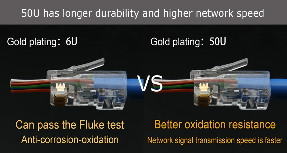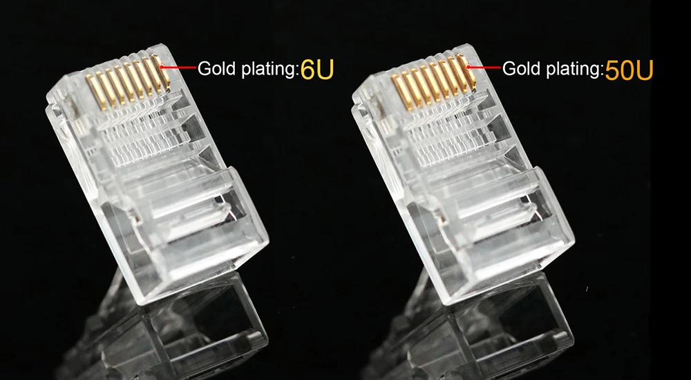 El baño de oro de 50u es el grado más alto, es oro real, la conductividad es muy alta, los datos de transmisión son más estables, adecuados para lugares más exigentes.