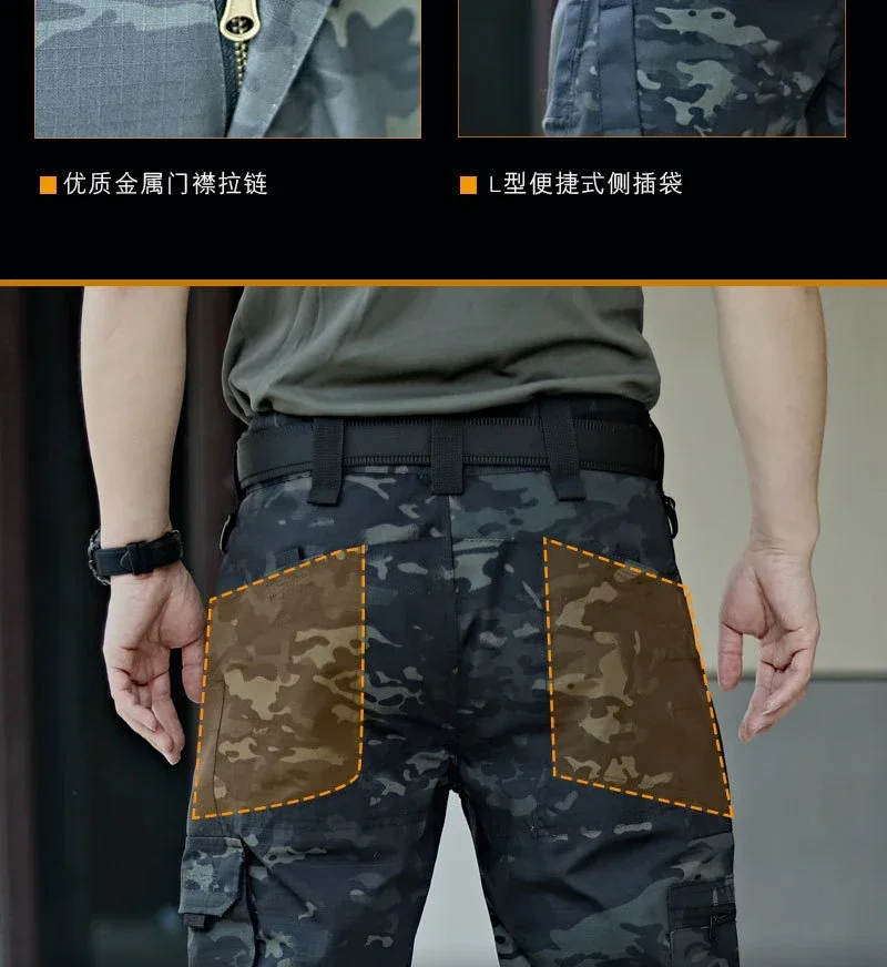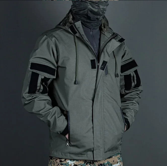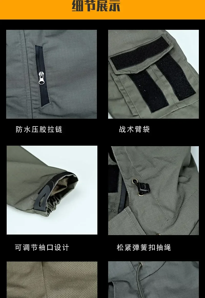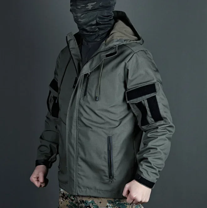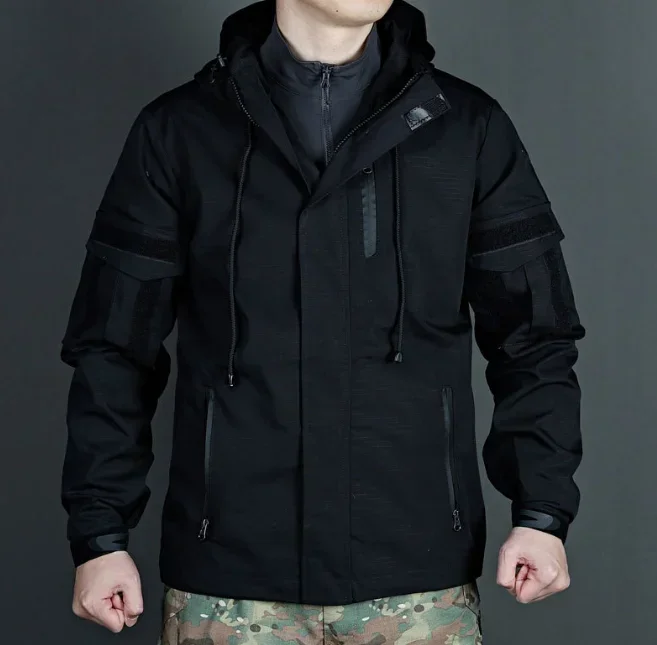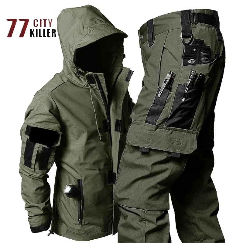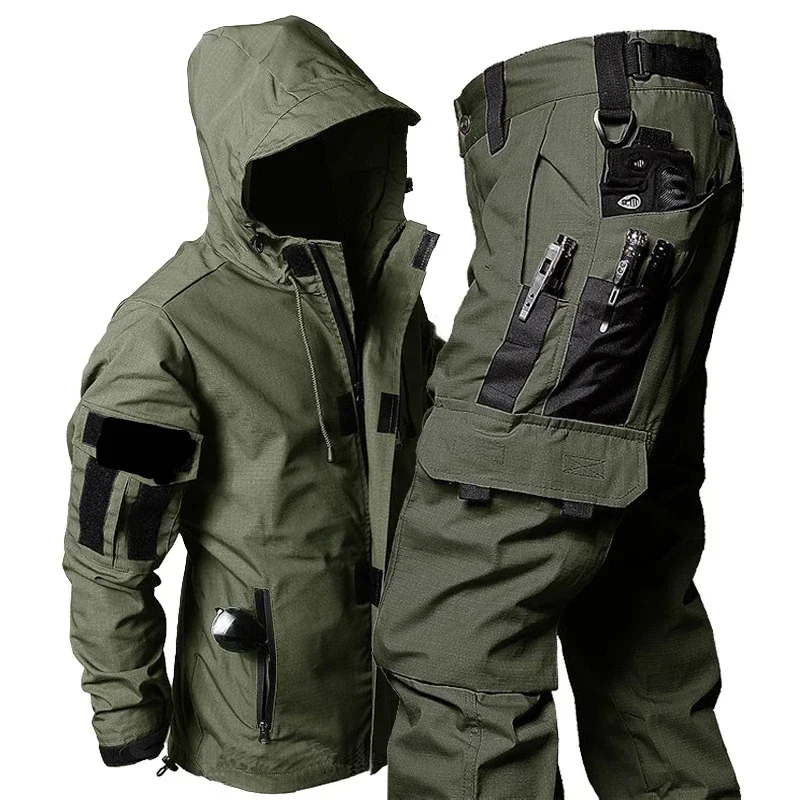 Conjunto de 2 piezas de tácticas militares para hombre, chaqueta con capucha transpirable resistente al desgaste, pantalones de Jogging con cremallera y múltiples bolsillos, primavera y otoño