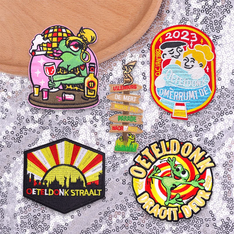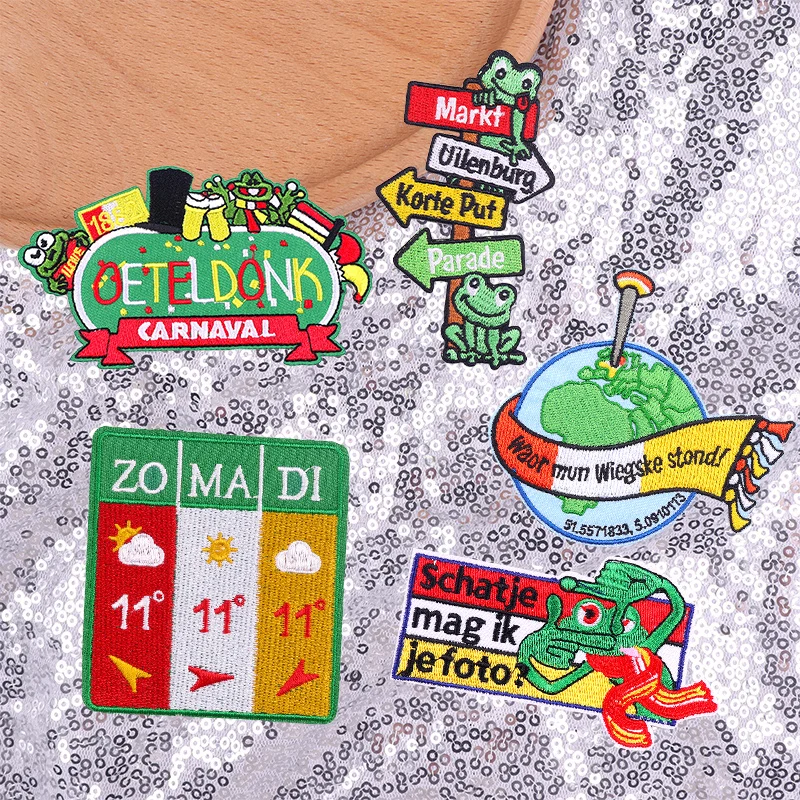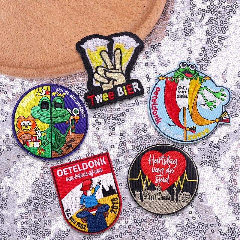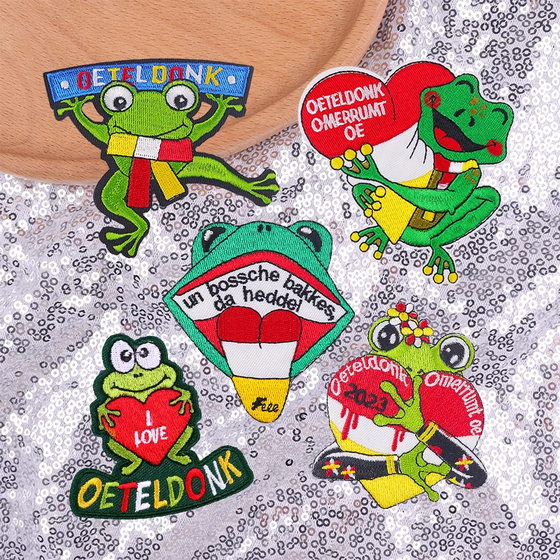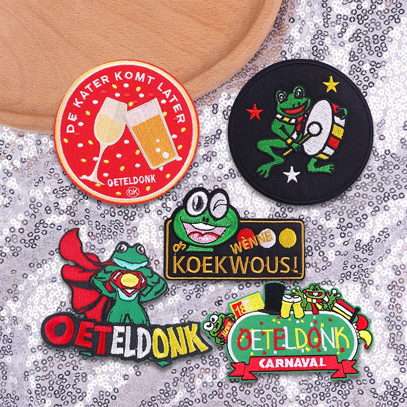 Juego de 3-6 uds. De parches de hierro con emblema de rana Oeteldonk para decoración de ropa, Emblema de carnaval uniforme, 3-6 Uds.