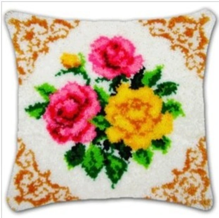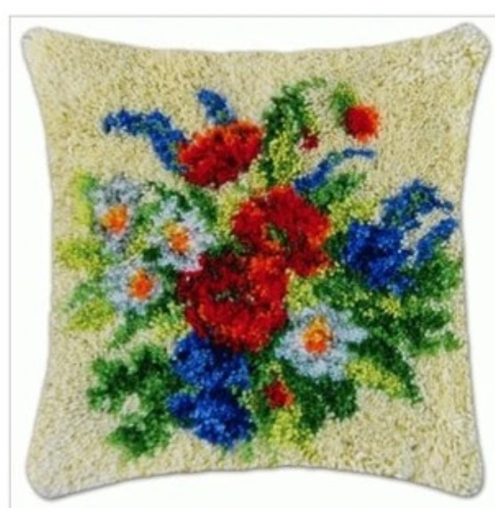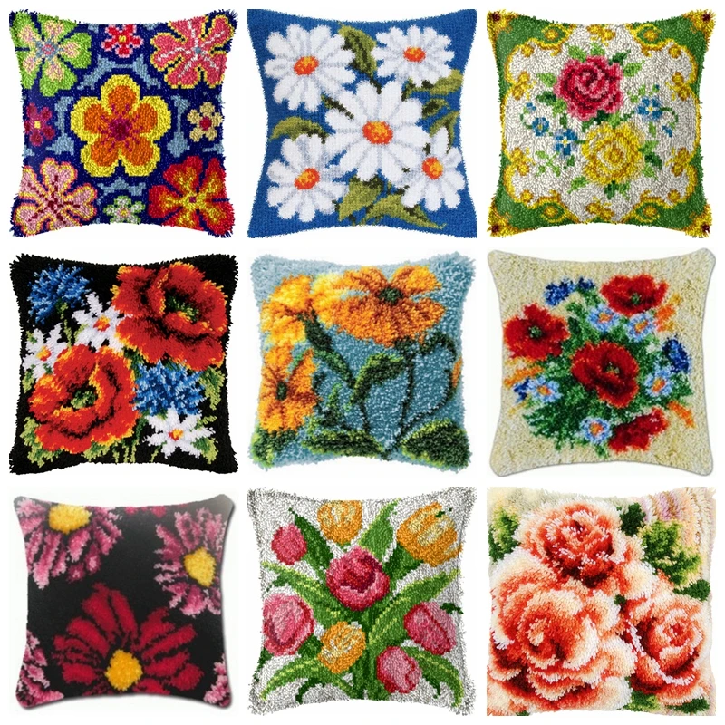 Serie de flores, almohada, gancho de pestillo, DIY cojín, paquete de botones Smyrna, almohada Foamiran para costura, juego de bordado de almohada
