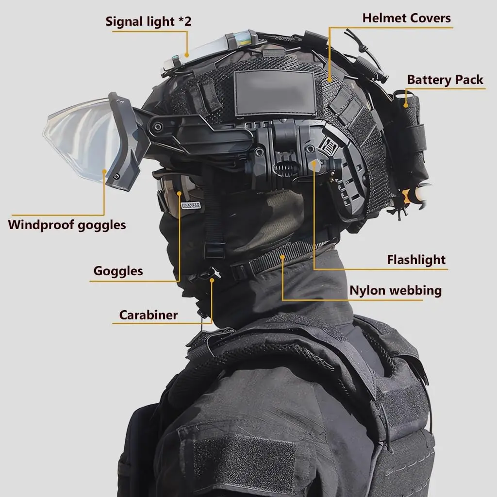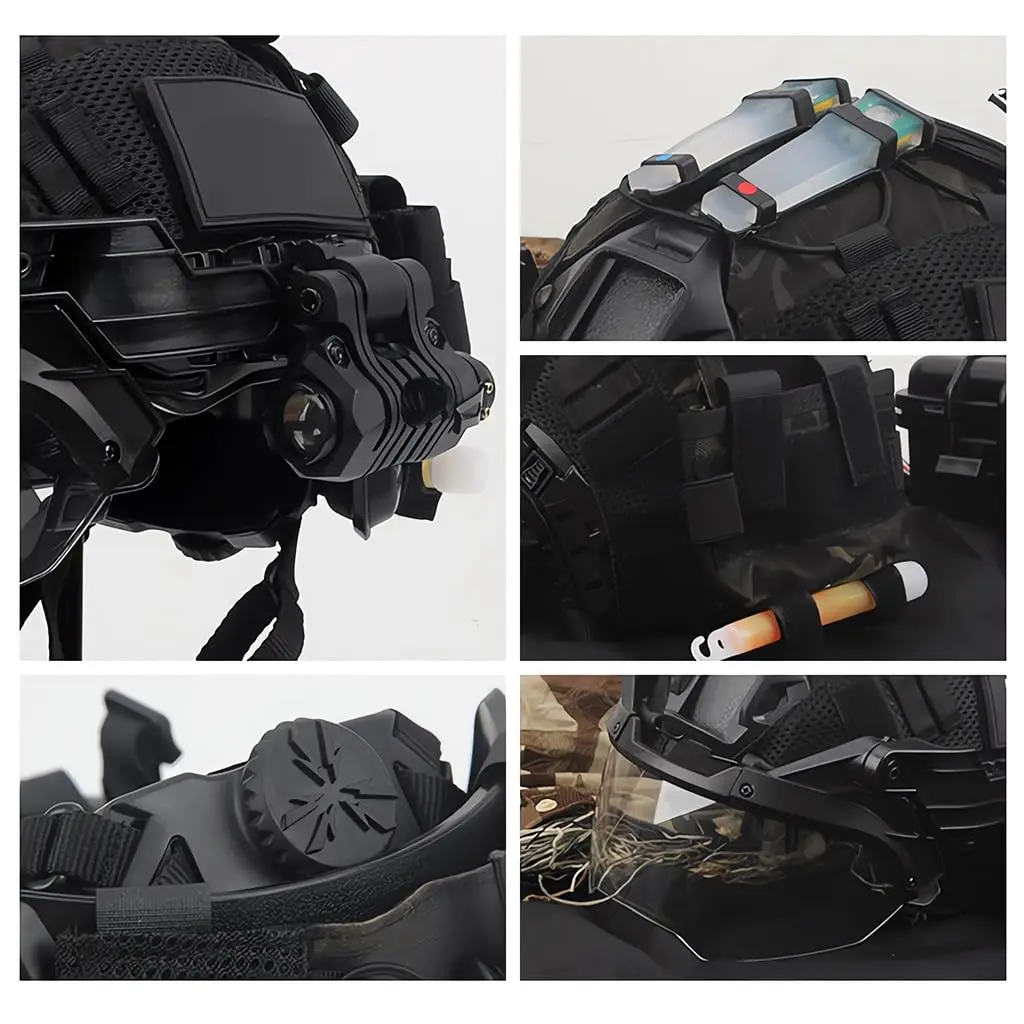 DISEÑO MULTIFUNCIONAL-Los rieles laterales se ajustan a la mayoría de los tipos de accesorios de rieles de casco, el soporte NVG incorporado es universalmente compatible con la mayoría de los soportes NVG, las placas exteriores permiten la instalación de parches.