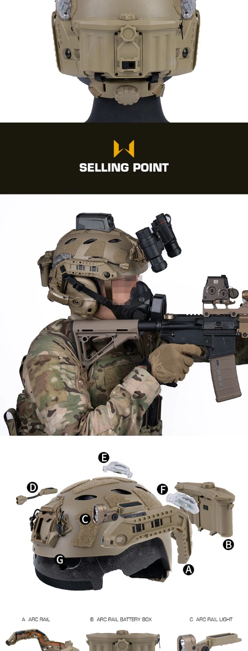 Conjunto de casco SF con riel ARC integrado con módulo táctico