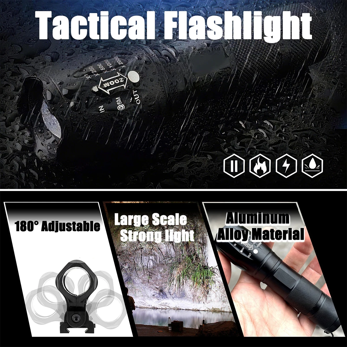★ Antorcha LED personalizada: linterna/linterna resistente al agua de alta calidad con atenuador, dura más de 10,000 vidas. Usando lámparas XM-L T6, distancia de irradiación 200-500 m El cableado interno aplica una salida de corriente constante, el rango de trabajo es amplio y puede utilizar las baterías en la mayor medida.