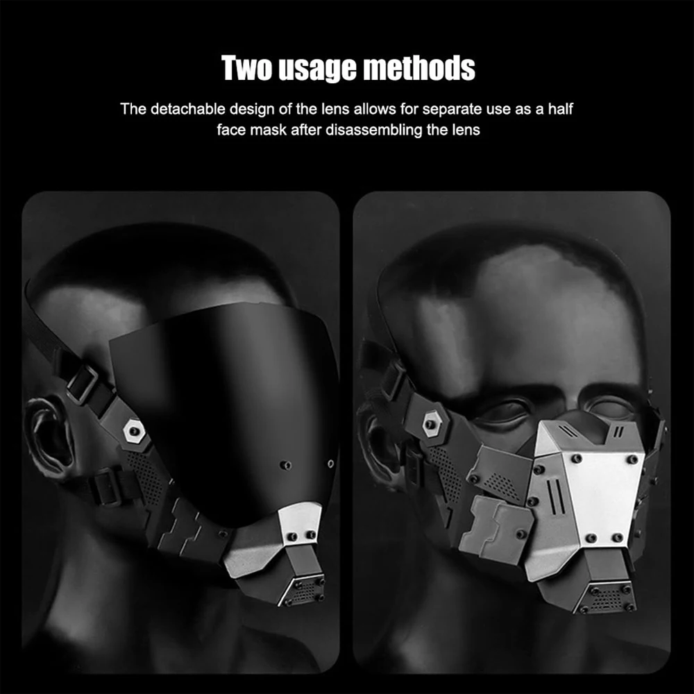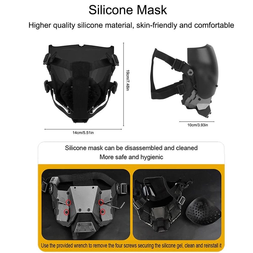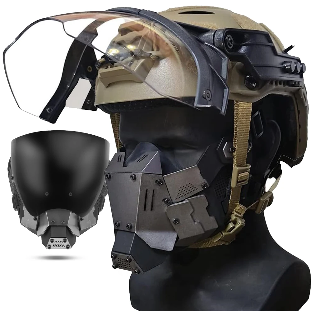 MÁSCARA CONFORTABLE:Este casco viene con una máscara táctica hecha de material de silicona. La mascarilla es suave y cómoda para la piel y protege tu cara del polvo, la suciedad y el sudor. Lentes extraíbles, se pueden usar como media máscara después de quitar las lentes.