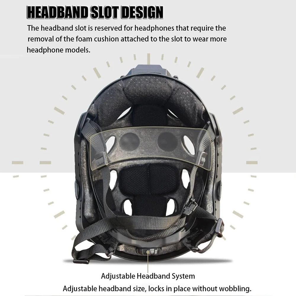 ACCESORIOS CASCO VERSÁTILES:Este casco tiene un panel de pasta irregular que le permite colocar más accesorios para el casco, como una montura NVG y un kit de luces para el casco. Puede personalizar su equipo de acuerdo con sus necesidades y siempre lucir genial.