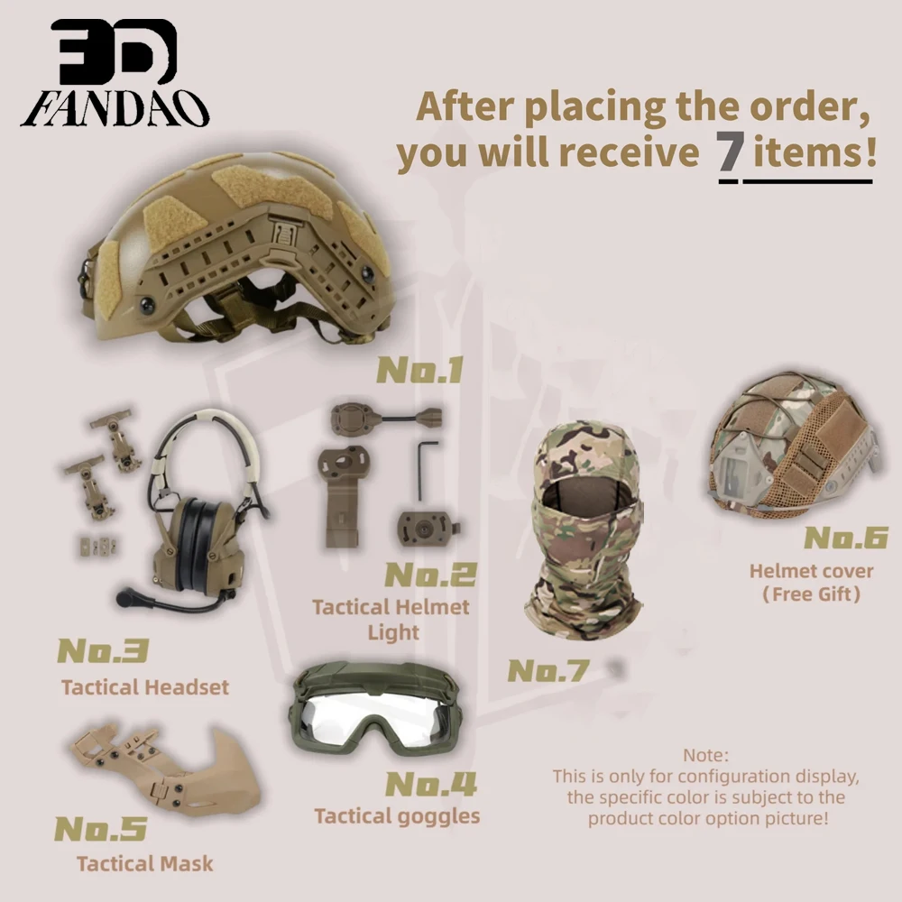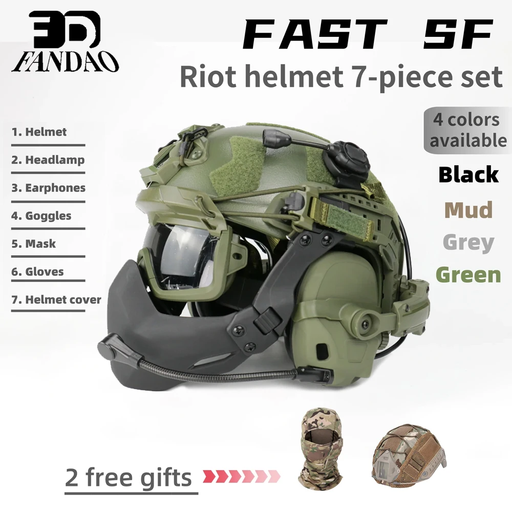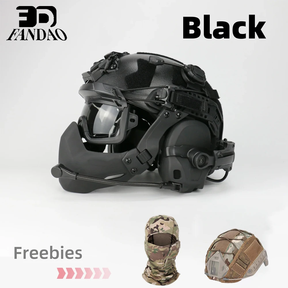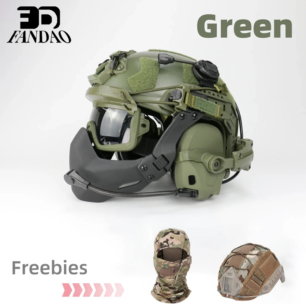 Conjunto de casco táctico, casco antidisturbios, auriculares con reducción de ruido, media protección facial, máscara protectora, gafas antiniebla, luz de señal para casco