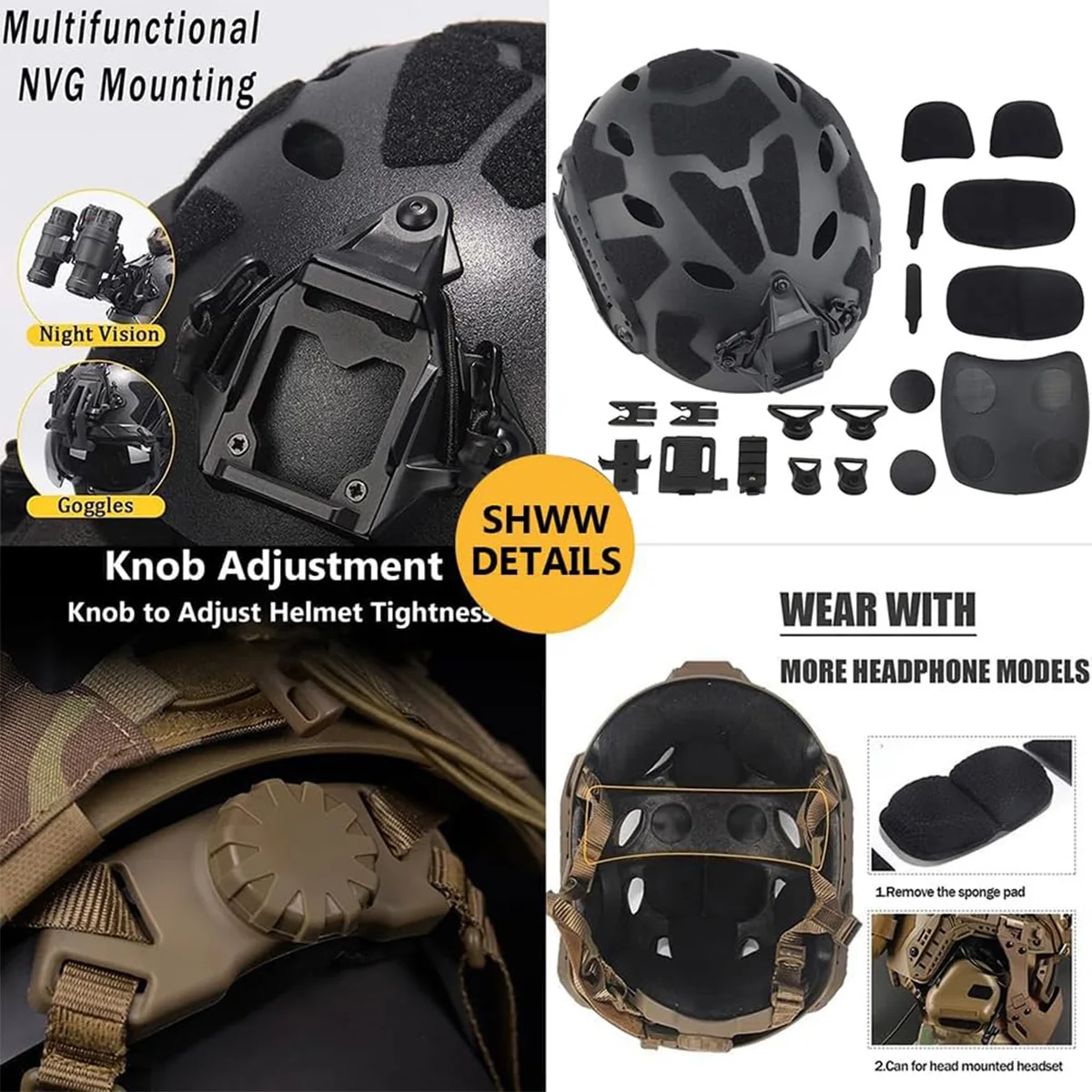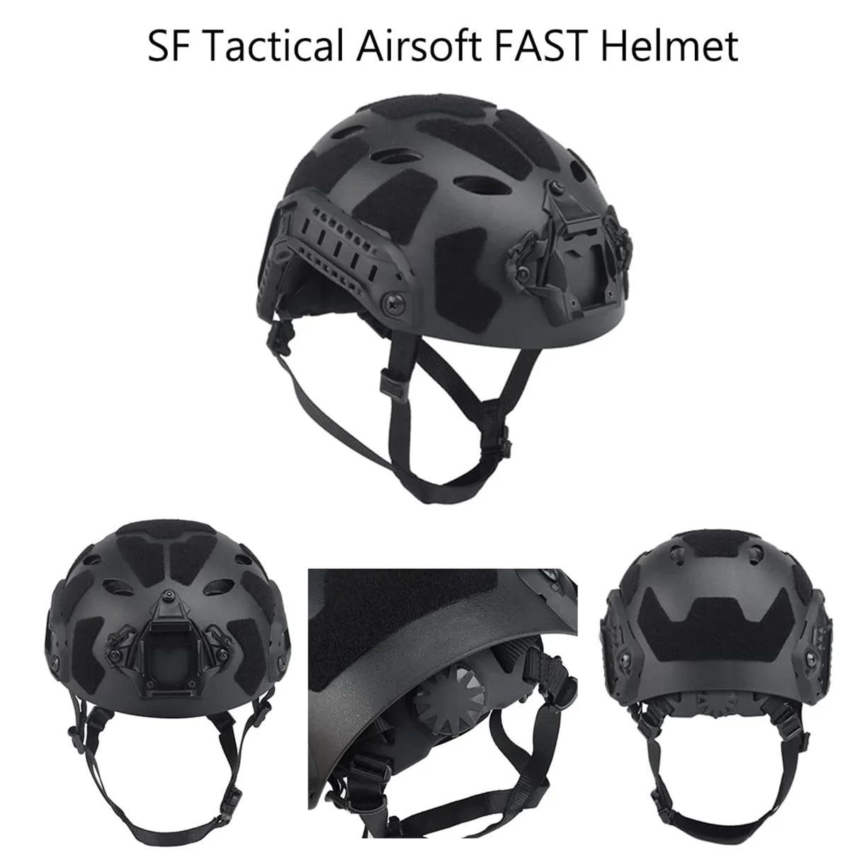 ❤Casco táctico FAST SF: hecho de material compuesto ABS, es ligero y duradero. El casco de corte alto engrosado de alta resistencia incluye Suspensión de nivel superior y sistema de almohadillas, almohadillas de espuma forradas de doble capa, orificios de ventilación y un diseño de geometría más aerodinámico para mejorar el flujo de aire, transpirable, cómodo. ajuste, y drenaje de agua; ¡Siempre se ve genial!