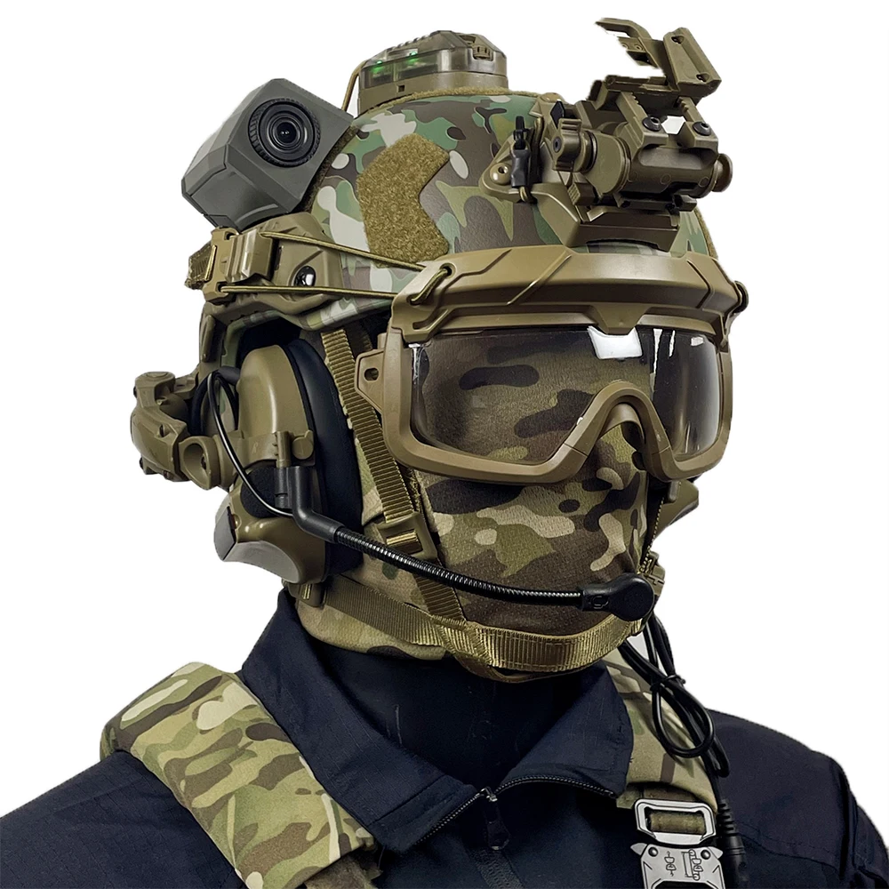 Conjunto de casco táctico con gafas Airsoft, auriculares para tiro, montura LG24, luz de identificación, funda para batería, modelo de cámara, pasamontañas