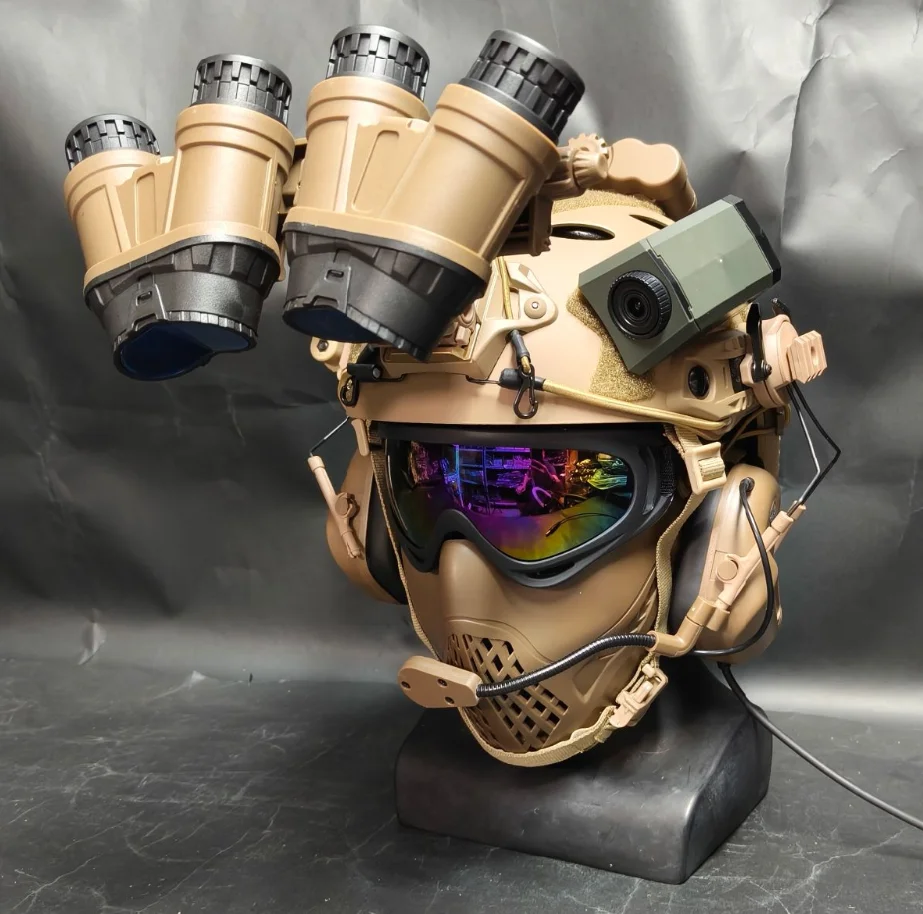 Conjunto de casco táctico máscara cuatro ojos dispositivo de visión nocturna modelo equipo