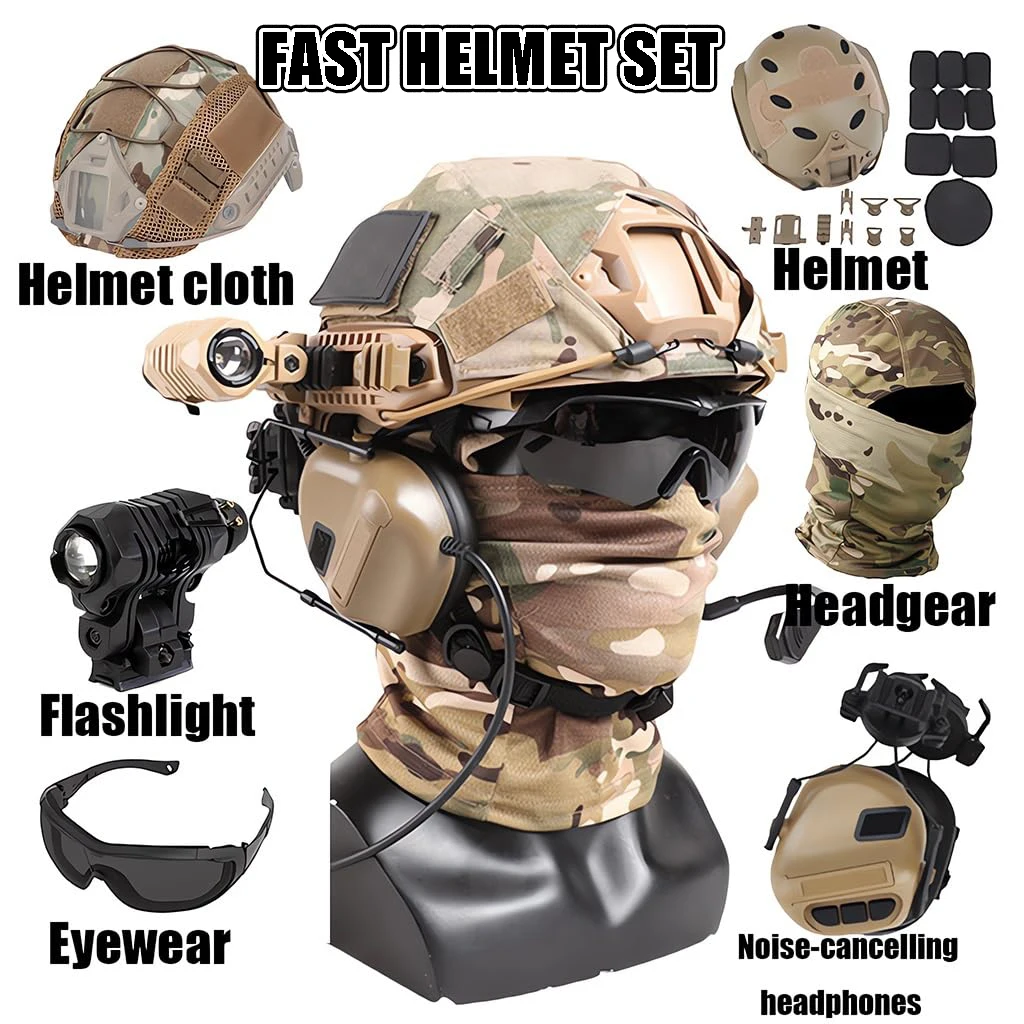 Conjunto de casco táctico para operaciones especiales con auriculares HD, máscara de Airsoft y gafas de Paintball, equipo de juego de guerra CS para caza al aire libre