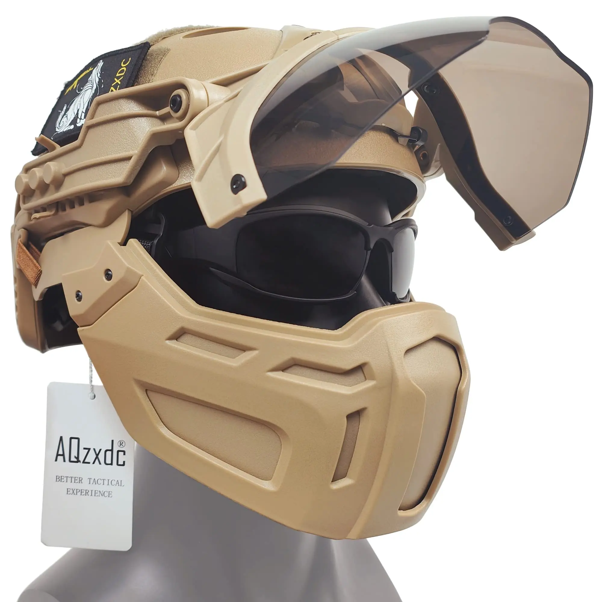 Conjunto de casco táctico rápido AQ zxdc con máscara Airsoft y visera, equipo de protección de Paintball de cara completa, para juego CS al aire libre, CQB