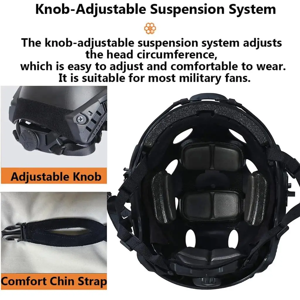 ★ Casco táctico ajustable para adultos y adolescentes: correas de tirantes ajustables en la barbilla/cuello para adaptarse perfectamente a su cara. Adecuado para circunferencia de la cabeza de 52 ~ 60 cm (aproximadamente 20 "-24")