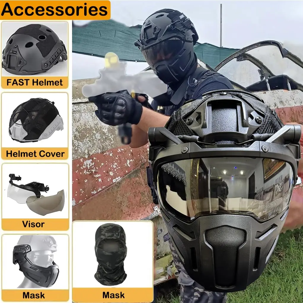 ★ Combinación súper perfecta: casco con máscara táctica, funda para casco y gafas de paintball.Dale al usuario 360° Protección integral, protege tu cabeza y no se dañará en el juego de paintball.