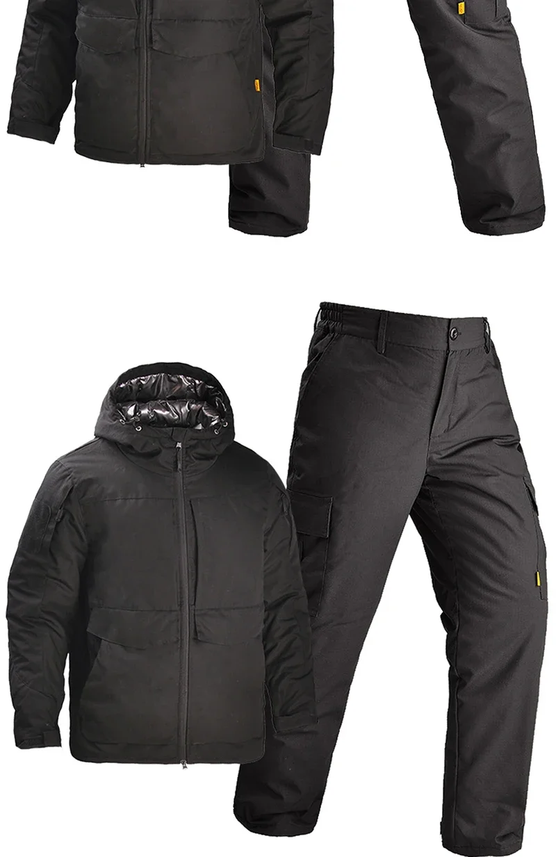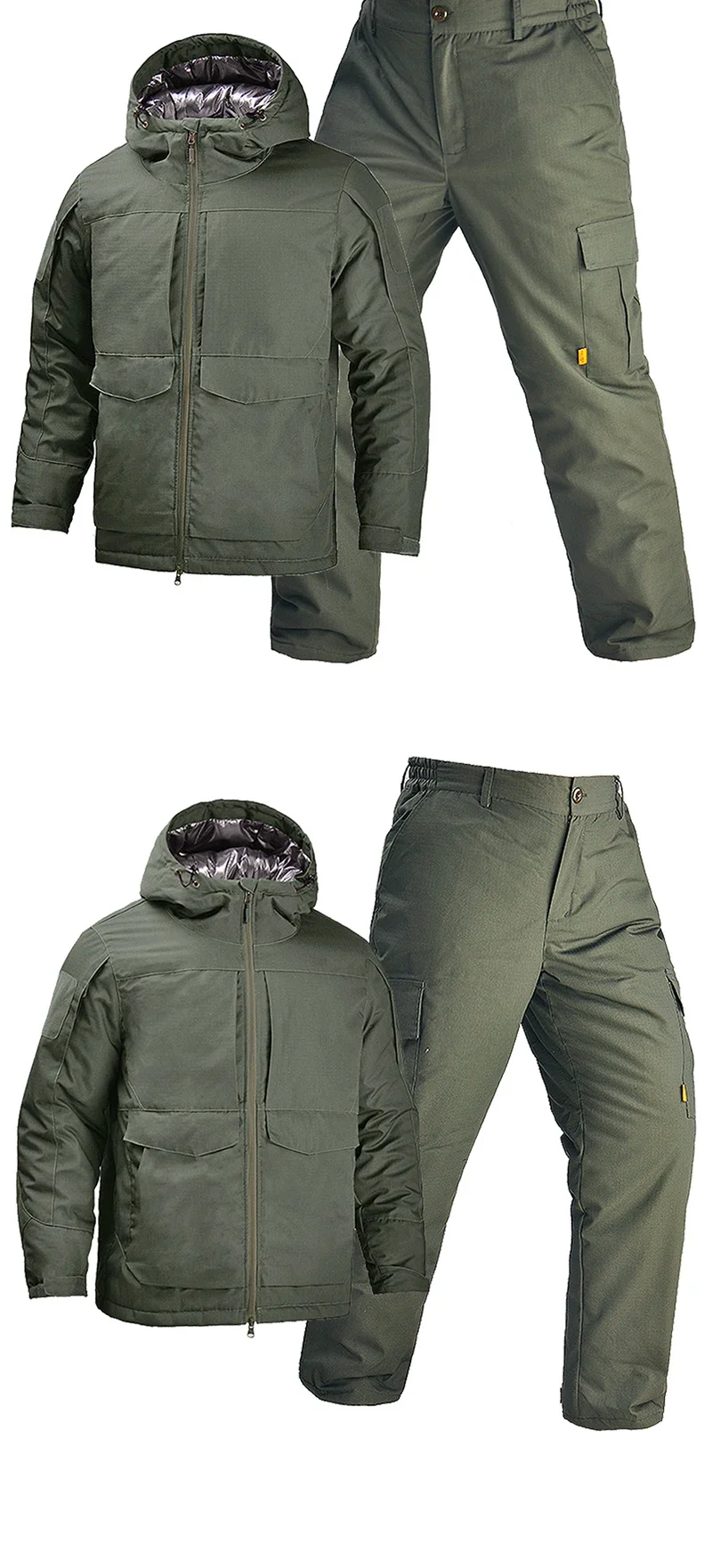 Conjunto de caza al aire libre de invierno, chaqueta gruesa y cálida con reflejo de calor, pantalones de escalada, ropa de hombre, trajes de uniforme táctico, cortavientosMaterial :65% acetato de polivinilo + 35% algodónCaracterística:Chaqueta: