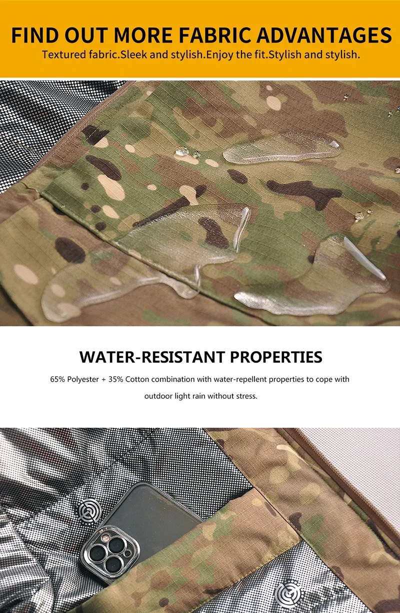 1.Capa exterior: material impermeable contra salpicaduras, sin miedo a la lluvia ligera.