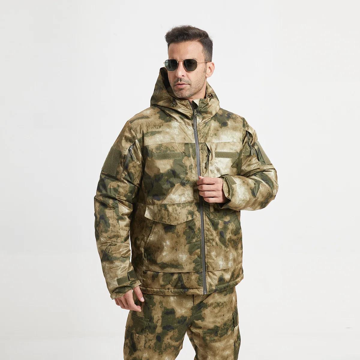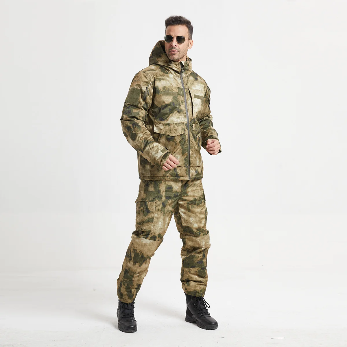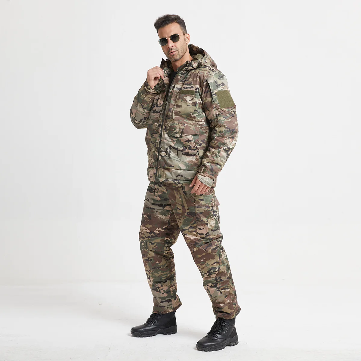 Conjunto de chaqueta rígida de camuflaje Softshell, a prueba de viento e impermeable, deportes tácticos Tad, Chaqueta de algodón con capucha cálida