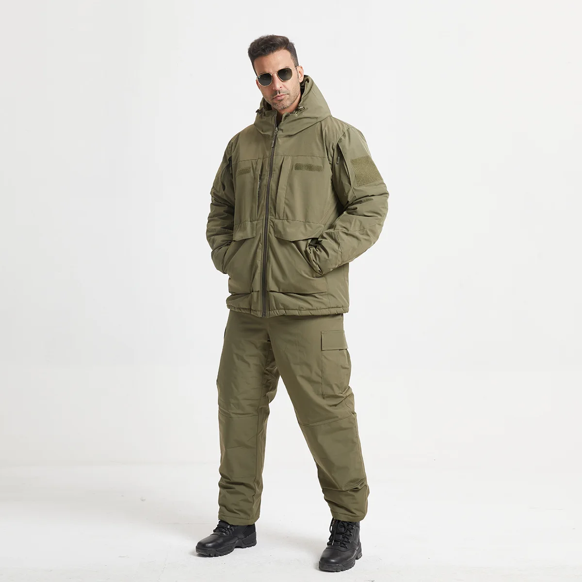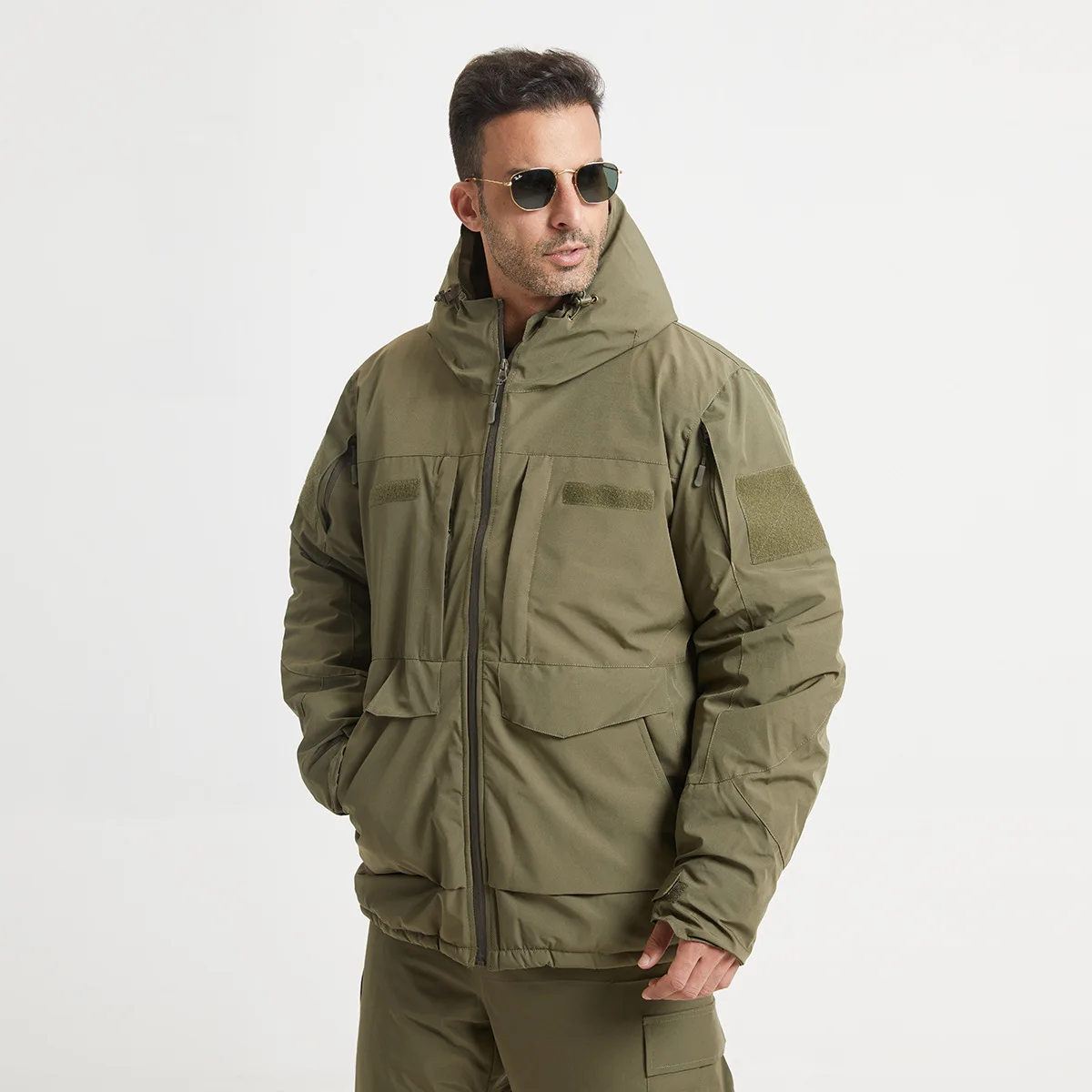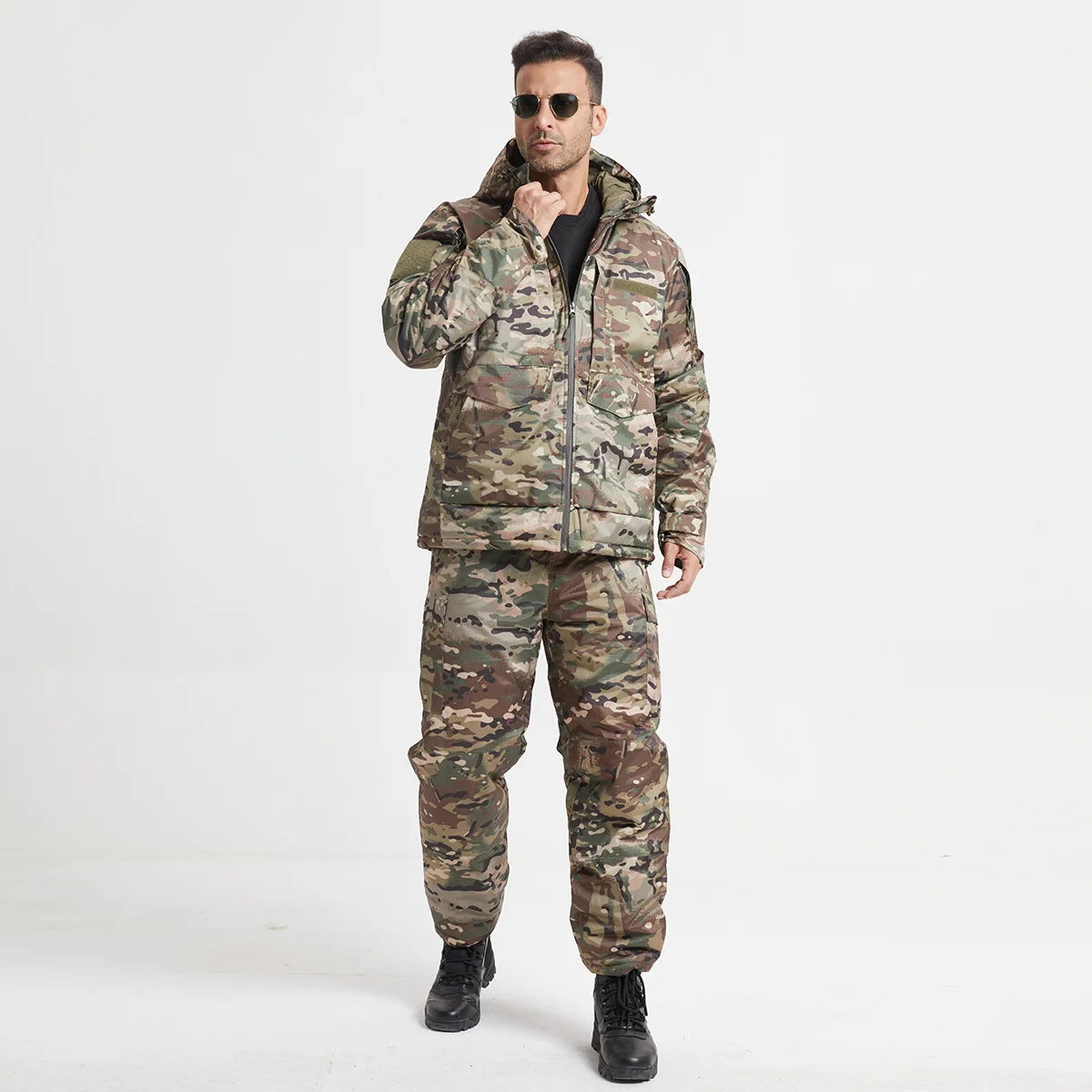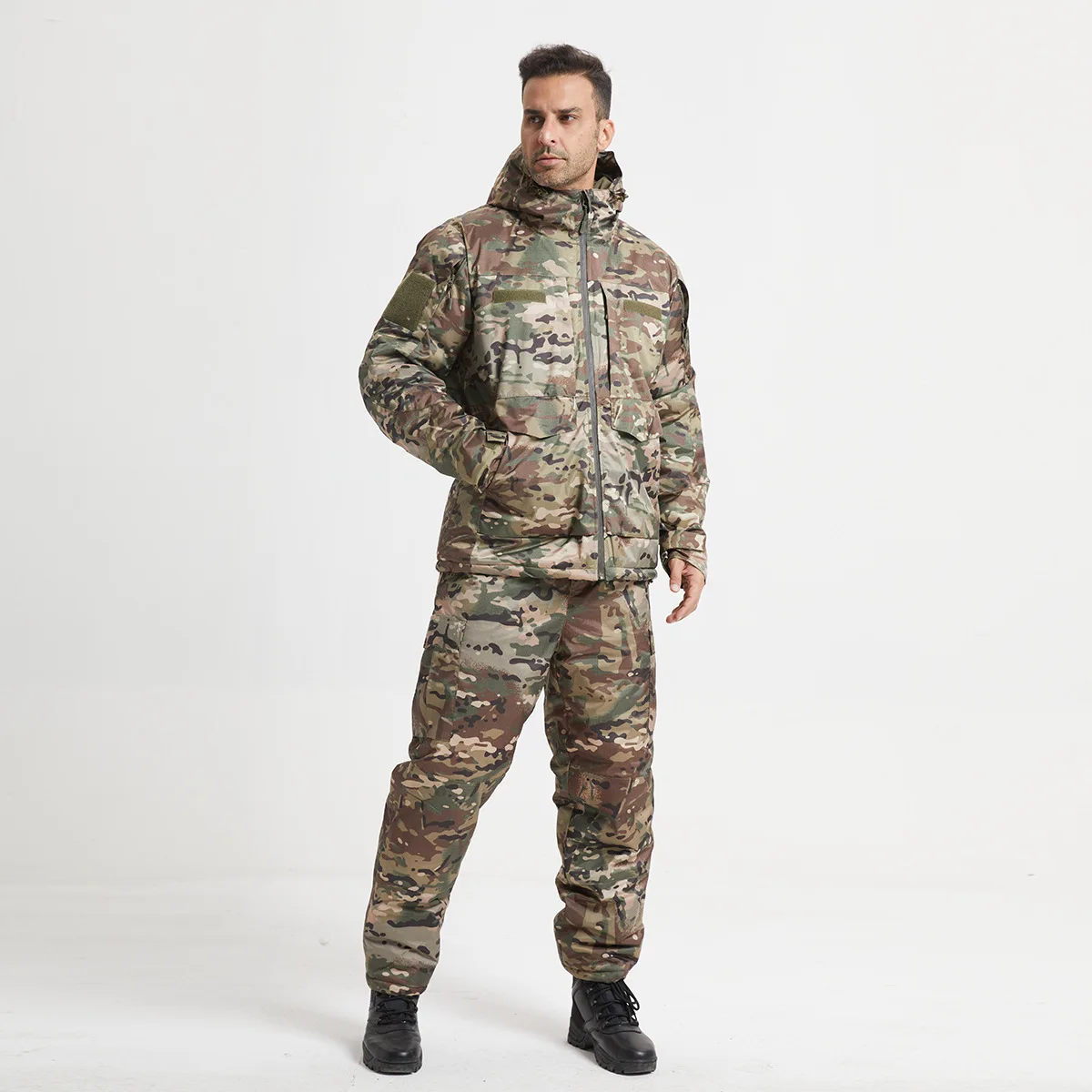 Conjunto de chaqueta rígida de camuflaje Softshell, a prueba de viento e impermeable, deportes tácticos Tad, Chaqueta de algodón con capucha cálida