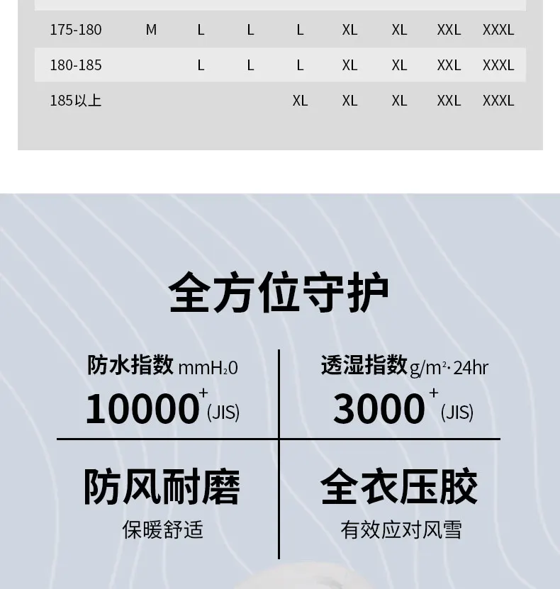 Los detalles incluyen tapas de viento ajustables multidimensionales y puños de velcro reforzados, que pueden envolver y apretar rápidamente las muñecas para evitar que entre aire frío.