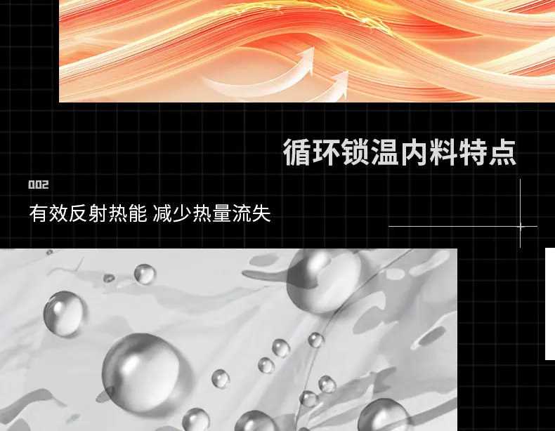 El tejido circulante que retiene el calor de la capa interior refleja eficazmente el calor y reduce la pérdida de calor.El diseño de aislamiento adicional mejora la retención de calor.
