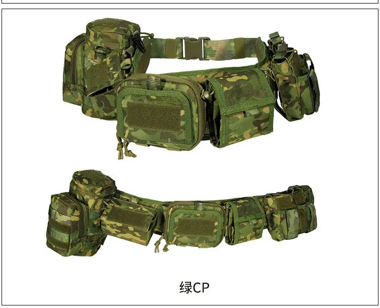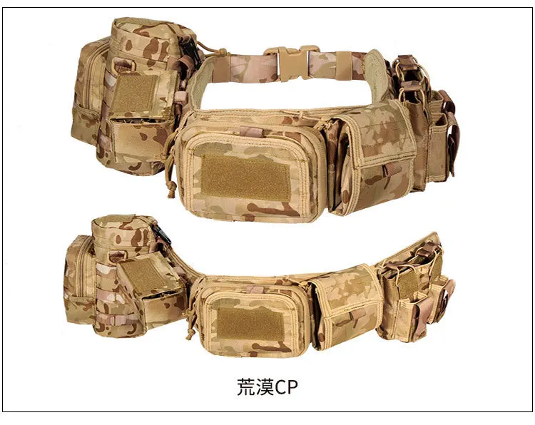 Conjunto de cinco piezas multifunción de camuflaje de 90-125CM de longitud, faja táctica, riñonera táctica 5 en 1, bolsa para accesorios de caza