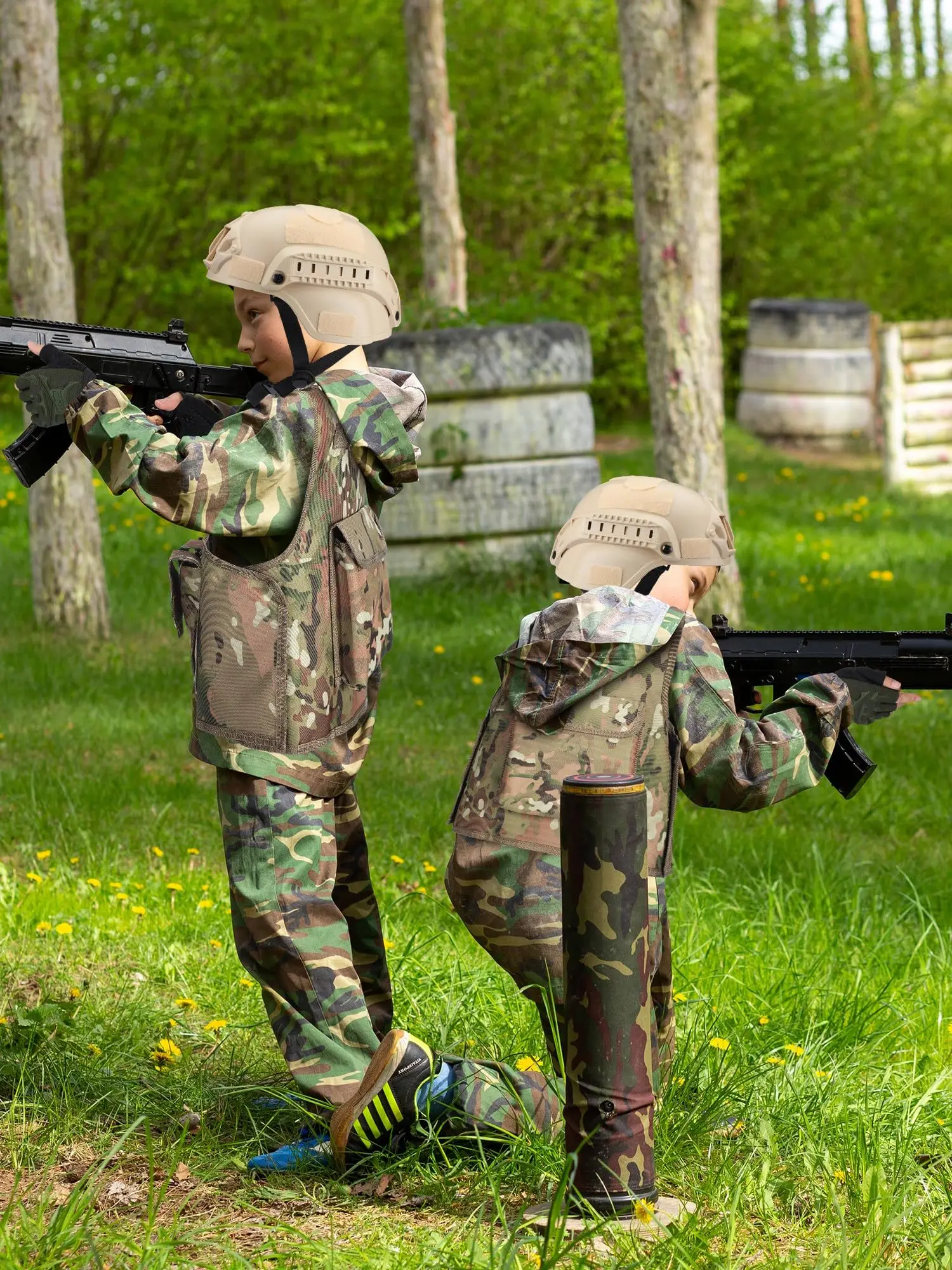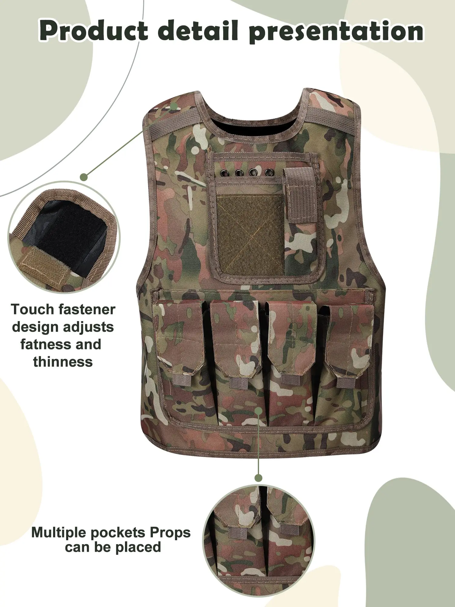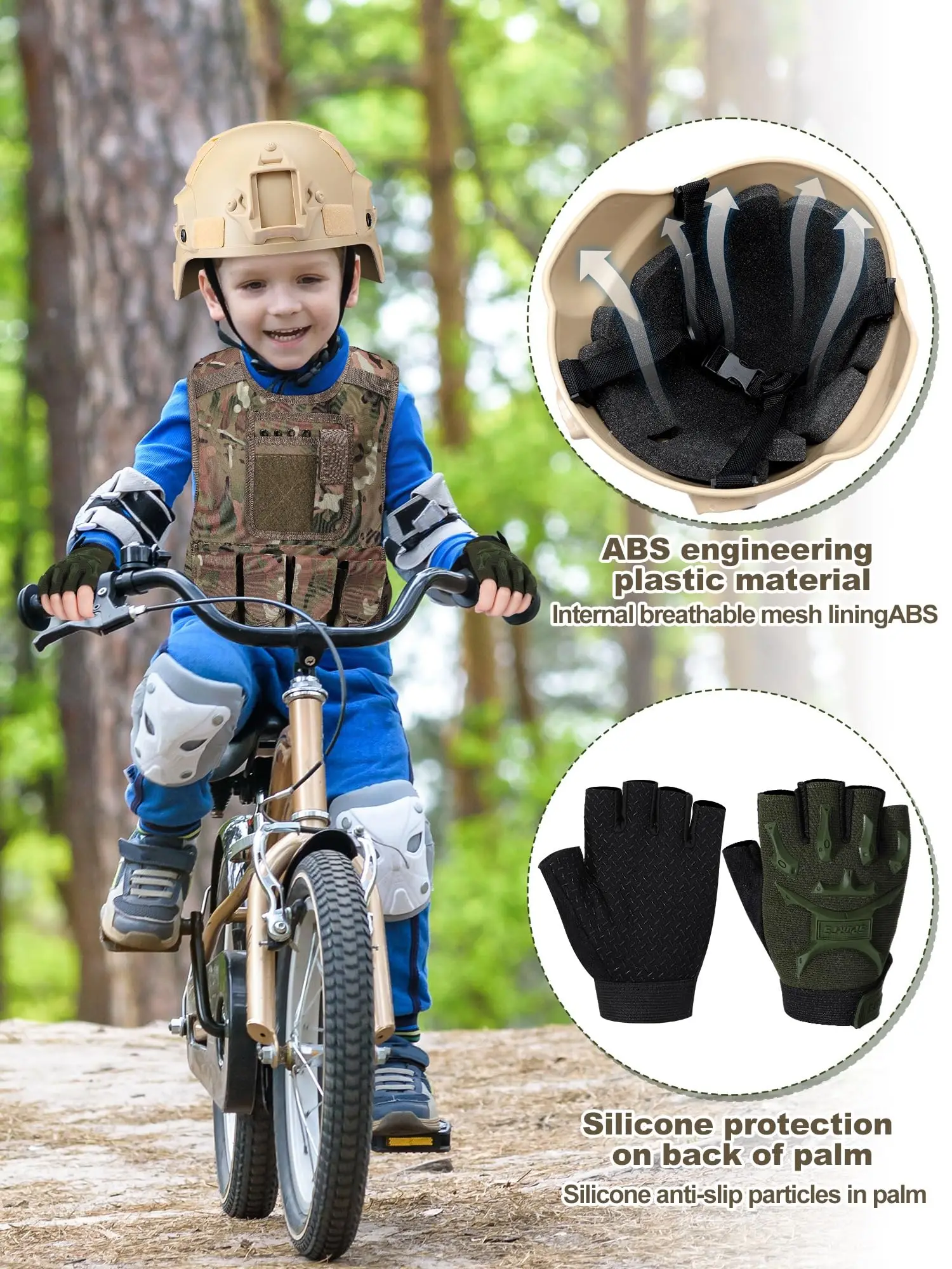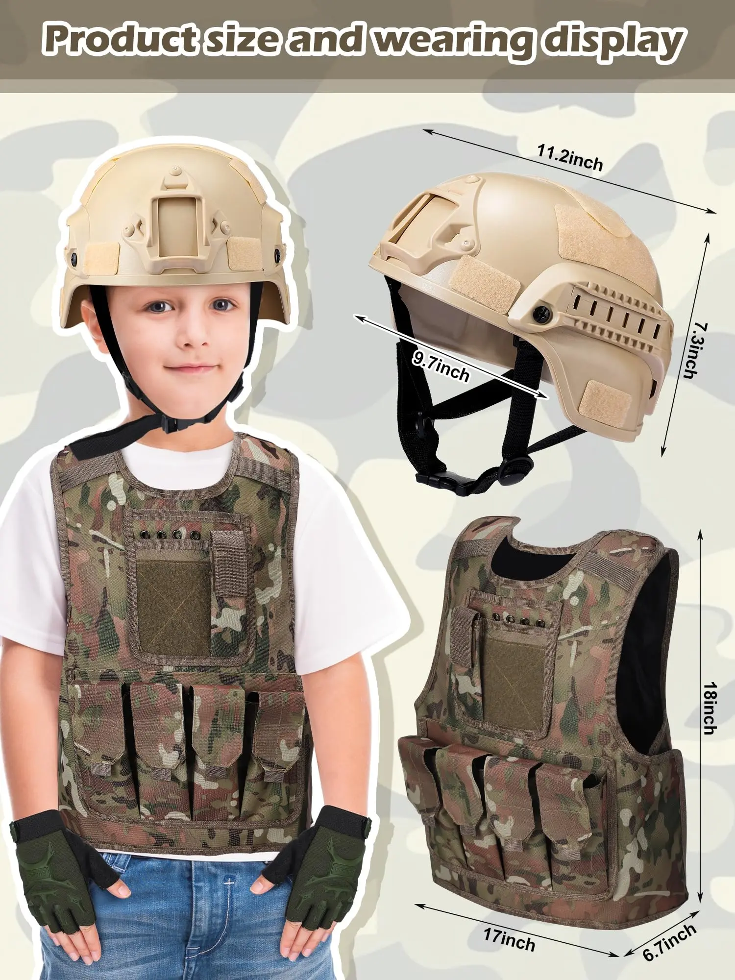Conjunto de combate para niños, 4 paquetes, chaleco táctico, guantes para casco, conjunto de máscara, chaleco de Paintball, casco rápido Airsoft, guantes de media máscara facial