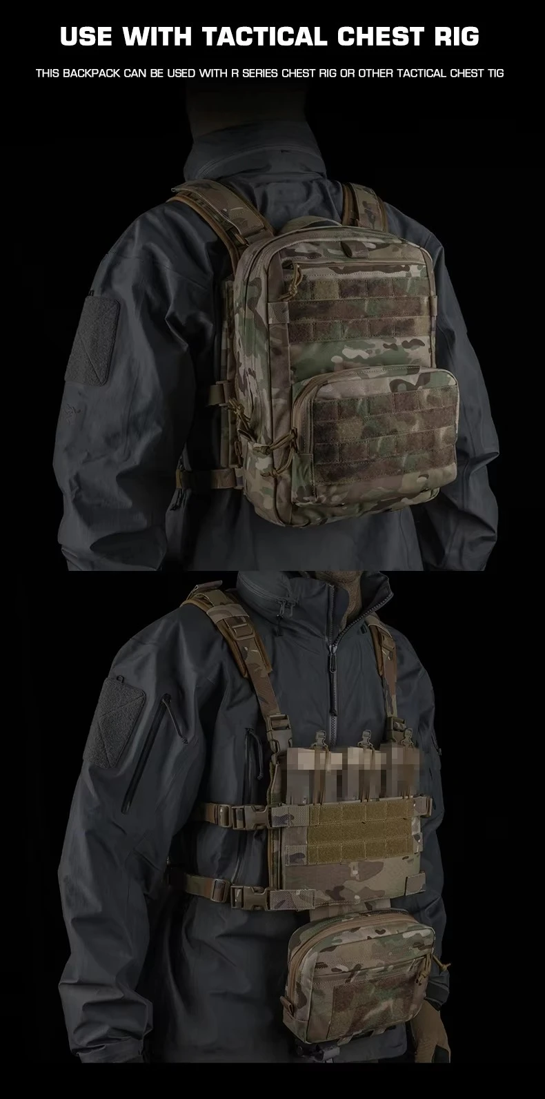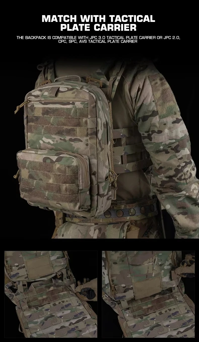 Conjunto de mochila serie R Compatible con chaleco JPC, compatible con placas protectoras medianas 10x12 y SAPI, entrenamiento táctico de caza