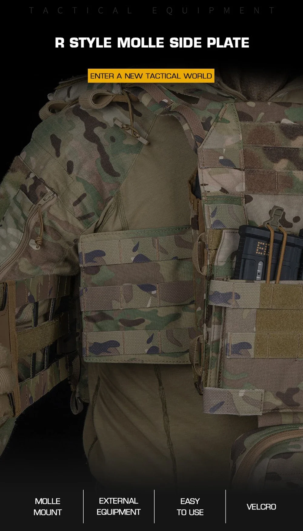 Conjunto de Panel lateral táctico Molle estilo serie R para portador de placa, chaleco de caza Airsoft, aparejo de pecho, bolsa de Radio Mag adaptable