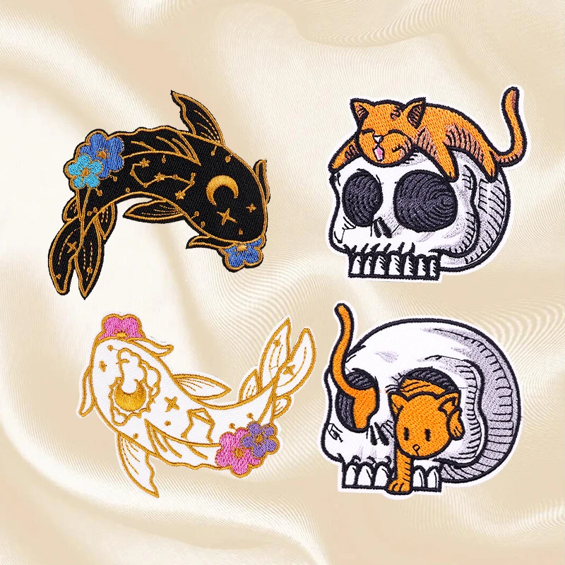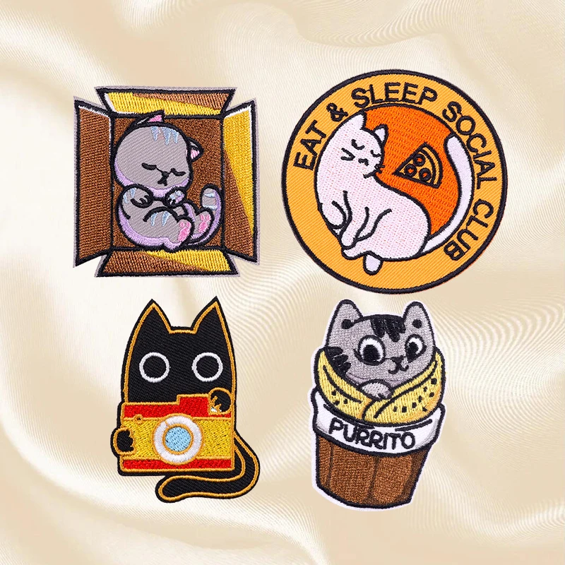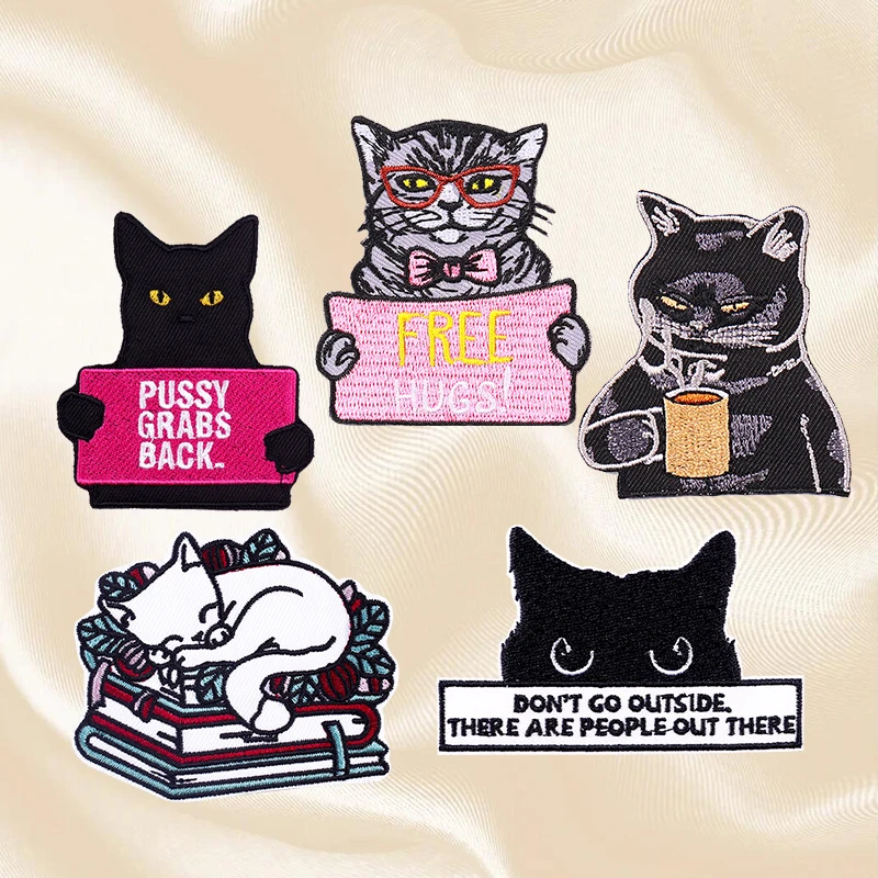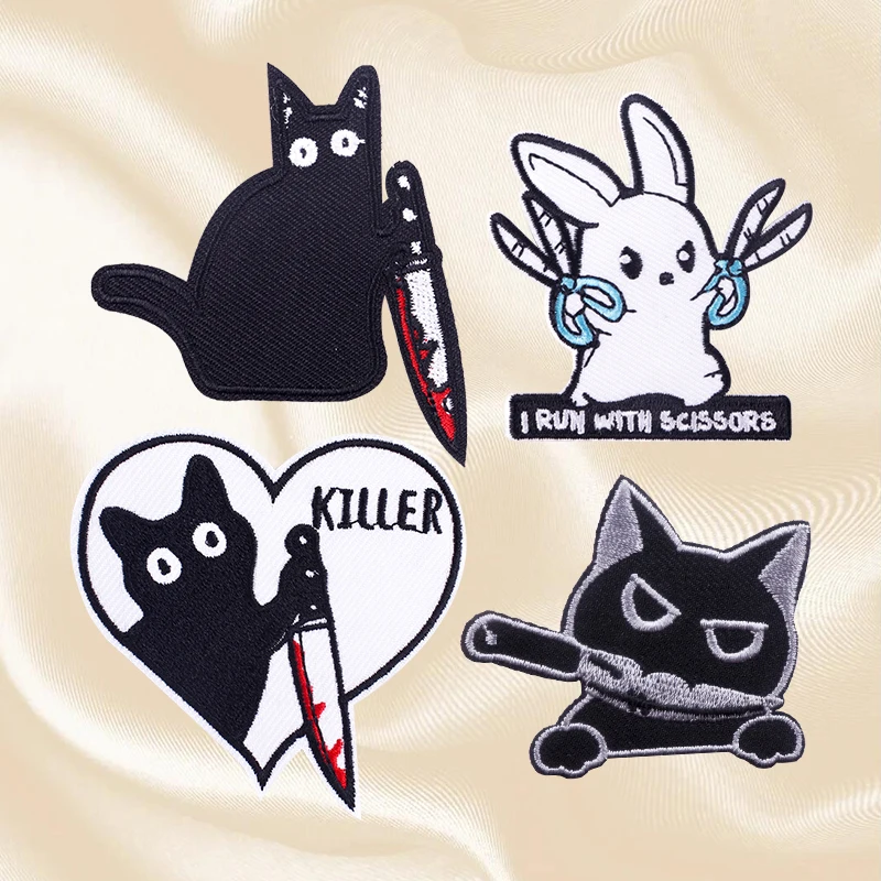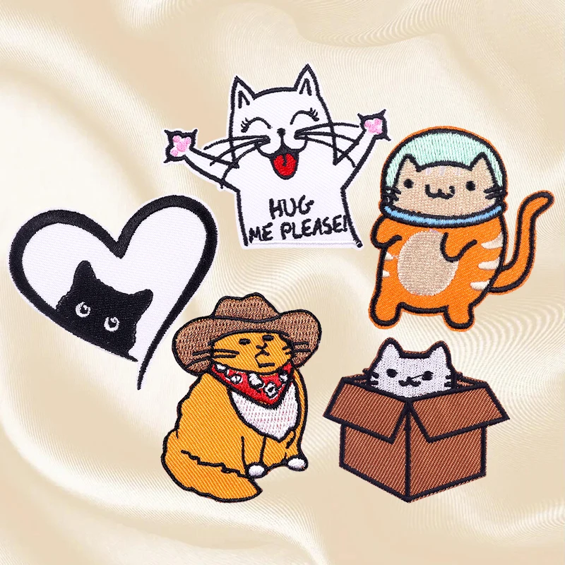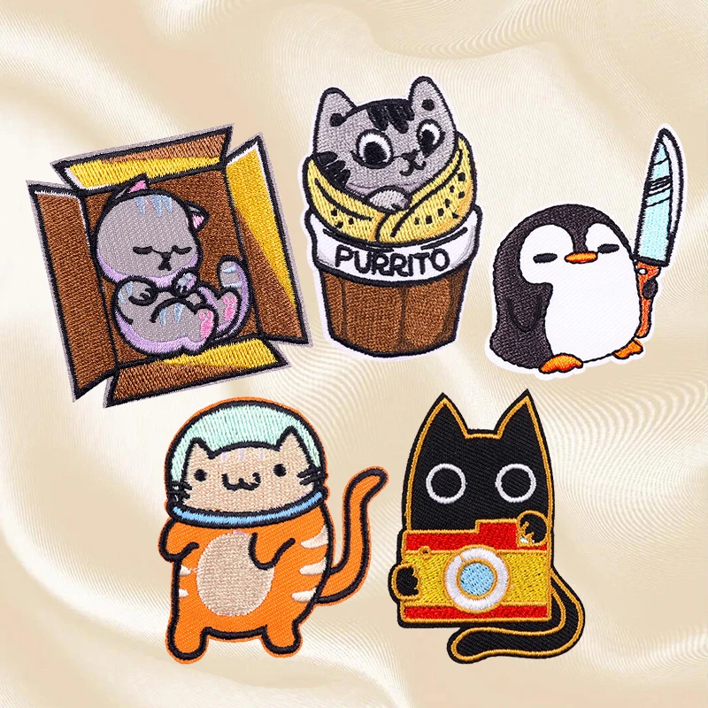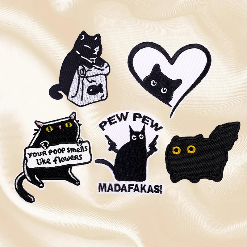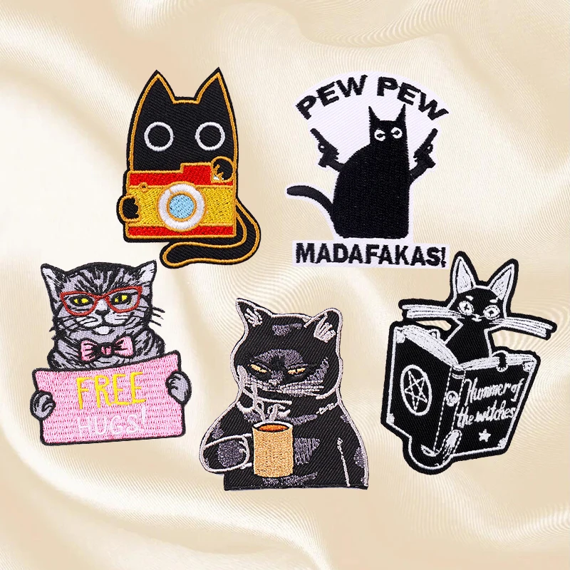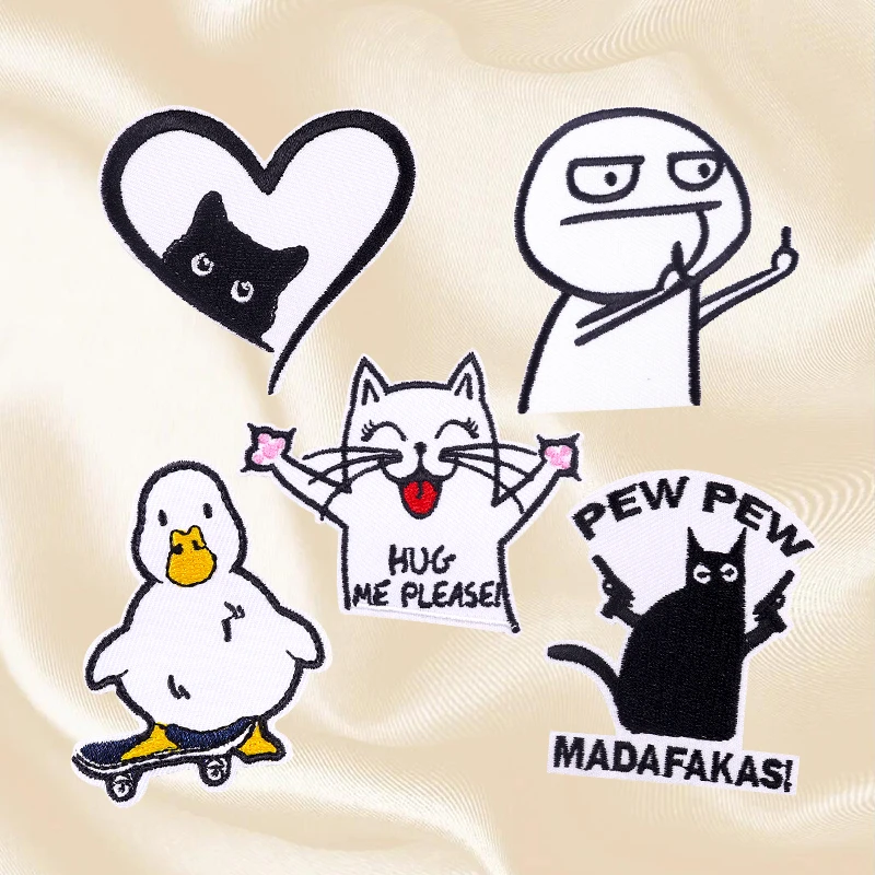 Conjunto de parches combinados DIY, parche de gato bordado de animales de dibujos animados, parches para planchar para ropa, apliques de costura de mariposa y pato