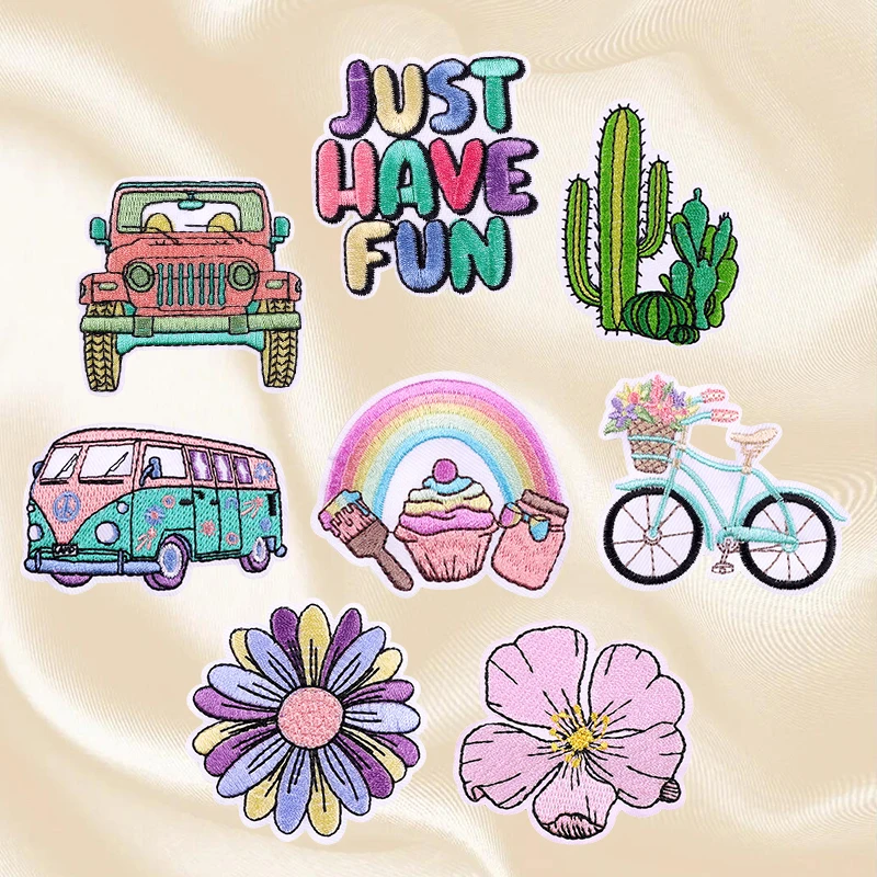 Conjunto de parches combinados, parche bordado de dibujos animados para coche, apliques para coser flores/arcoíris, parches para planchar para ropa, parches bonitos