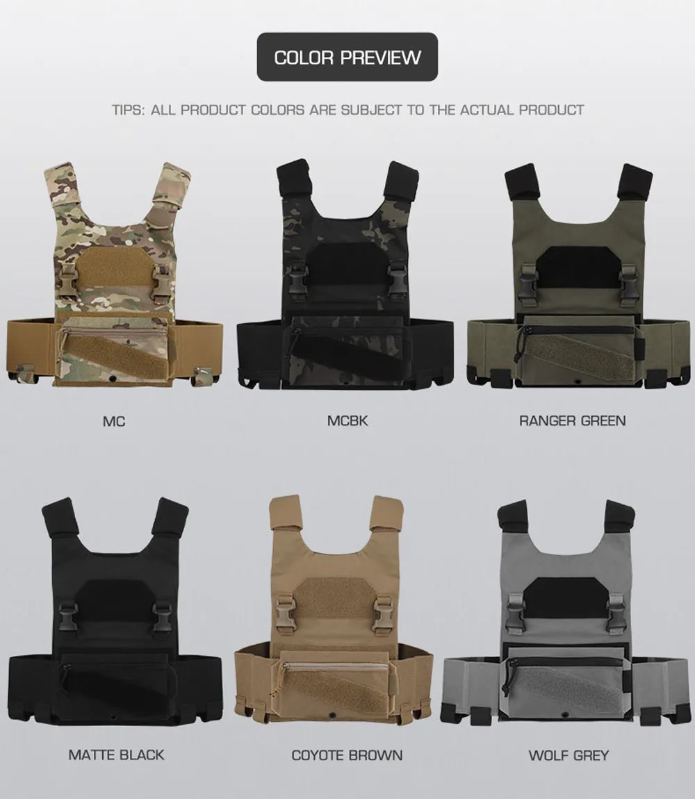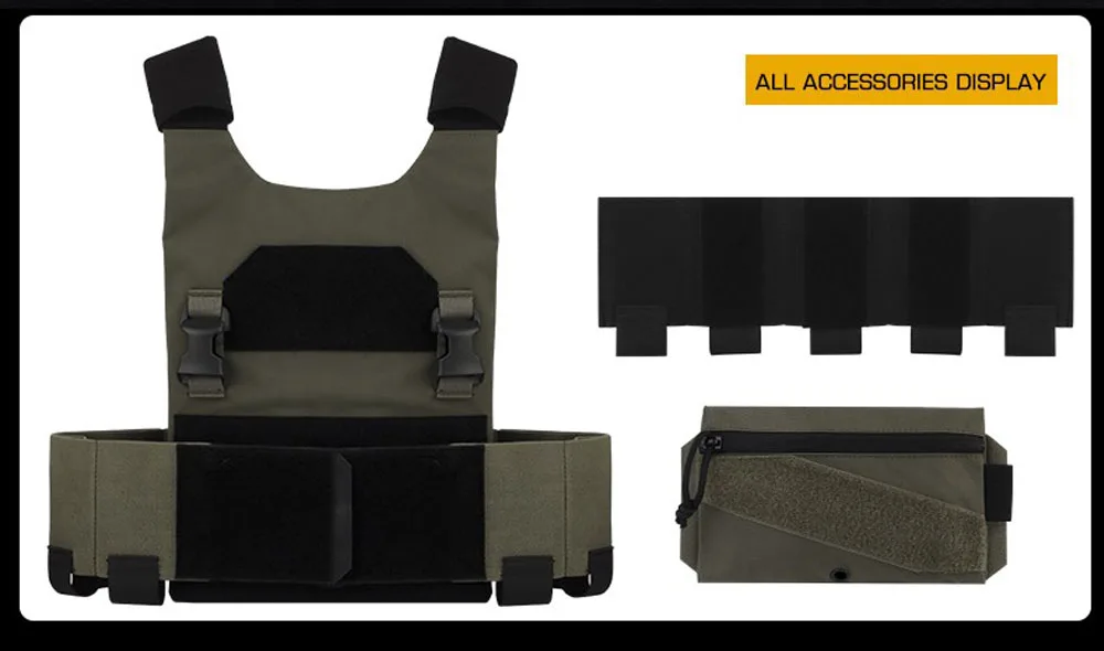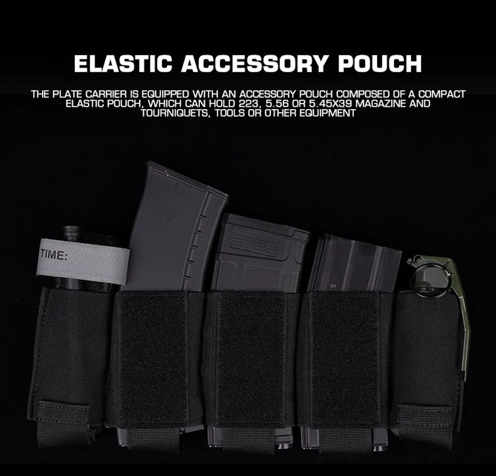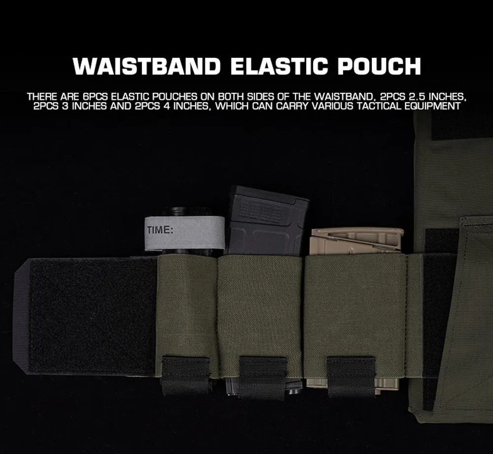 Conjunto de portador de placa de chaleco táctico, faja elástica, diseño de bolsa para revistas, equipo ligero de chaleco Airsoft de combate para caza al aire libre