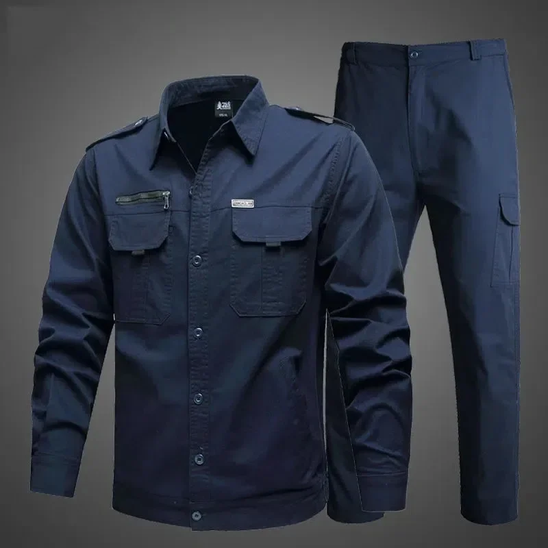 Conjunto de ropa de trabajo de primavera para hombre, camisas de algodón de combate de entrenamiento táctico y pantalones Cargo, trajes sueltos informales de color verde militar para verano