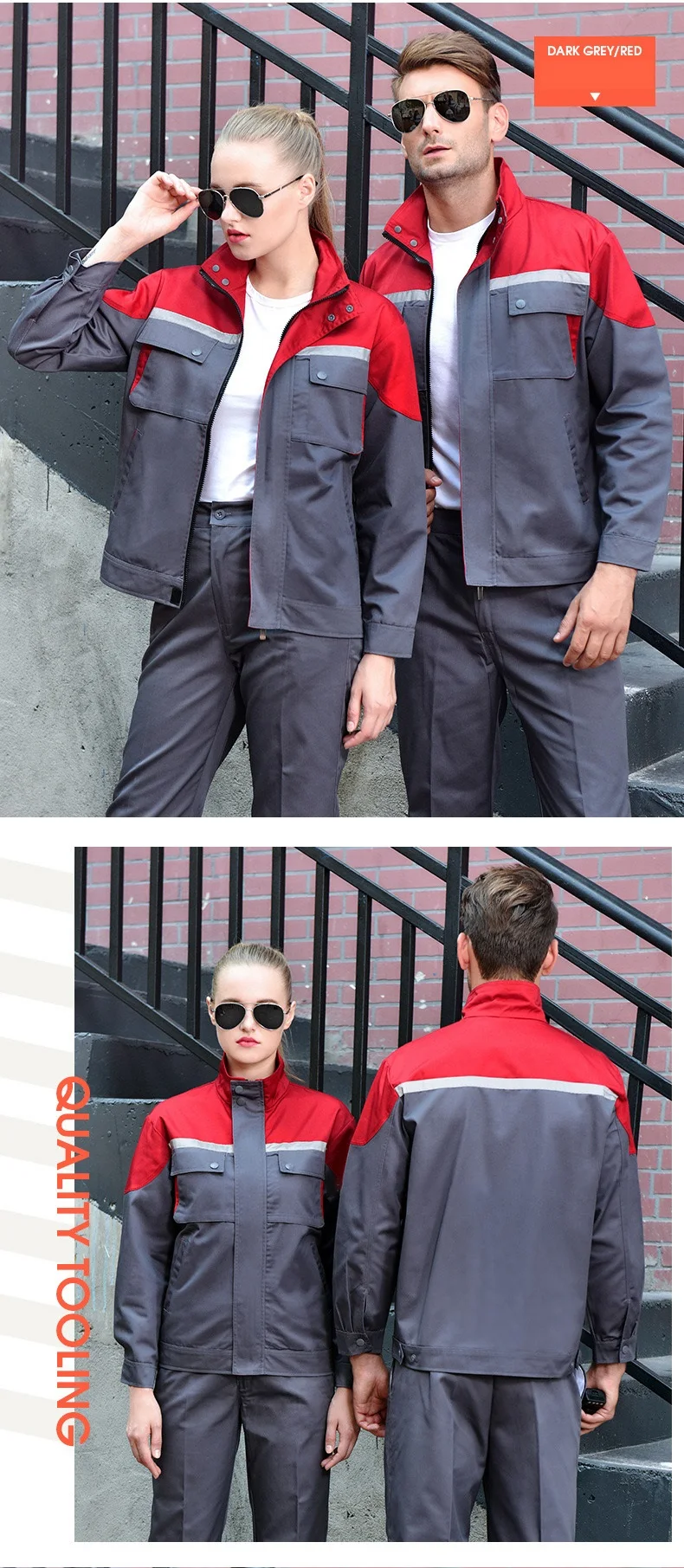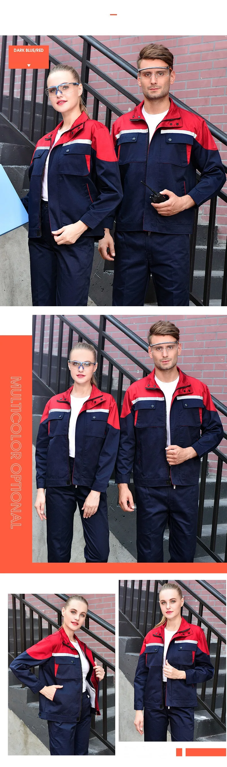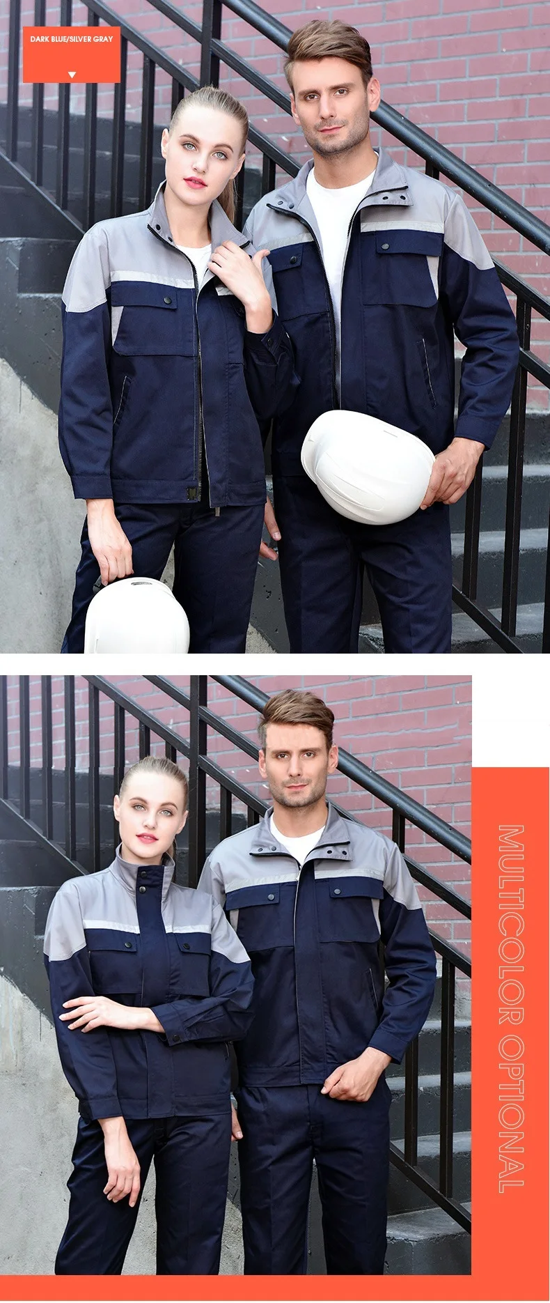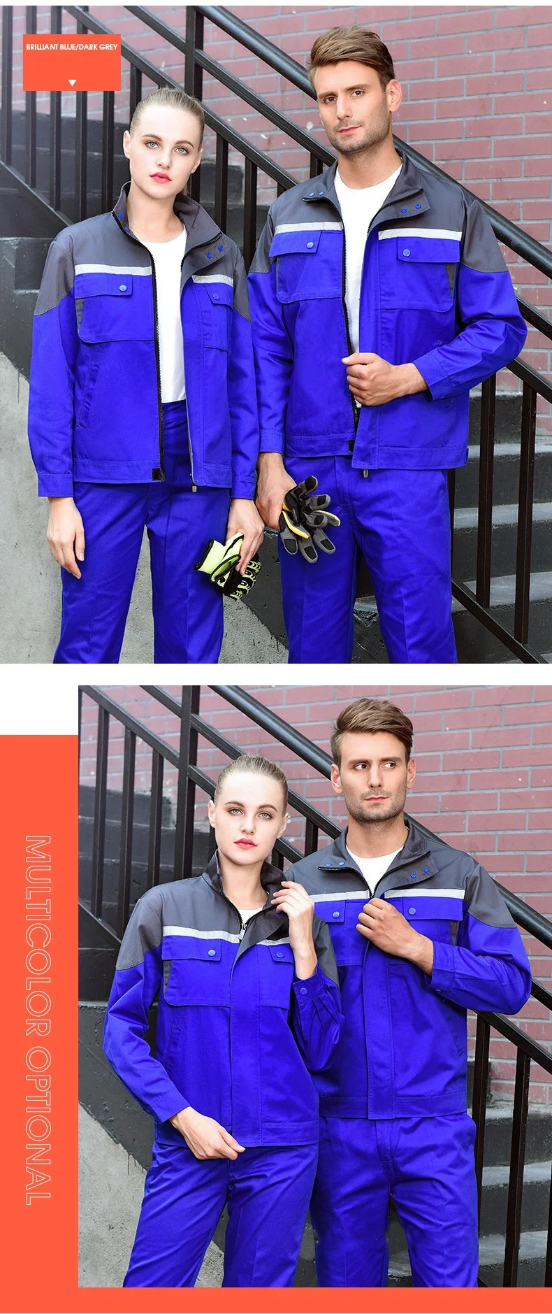 Conjunto de ropa de trabajo reflectante para primavera y otoño, chaqueta + pantalones para hombre y mujer, taller de soldador de reparación de máquina, uniforme general resistente al desgasteConjunto de ropa de trabajo reflectante para hombres y mujeres, chaqueta + pantalones, reparación de máquinas, taller de soldador, uniformes resistentes al desgaste, S-5XL