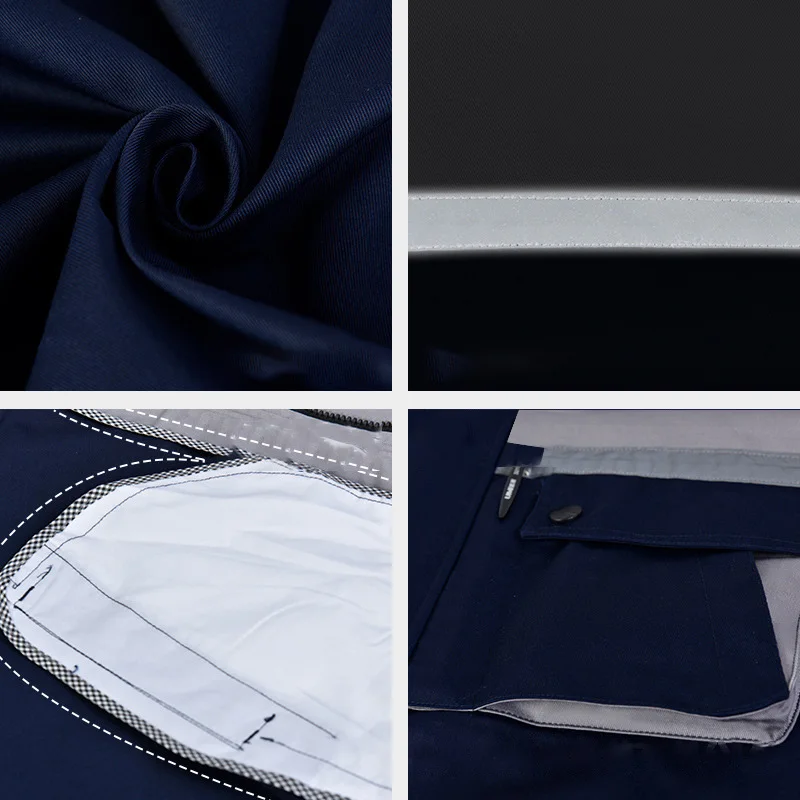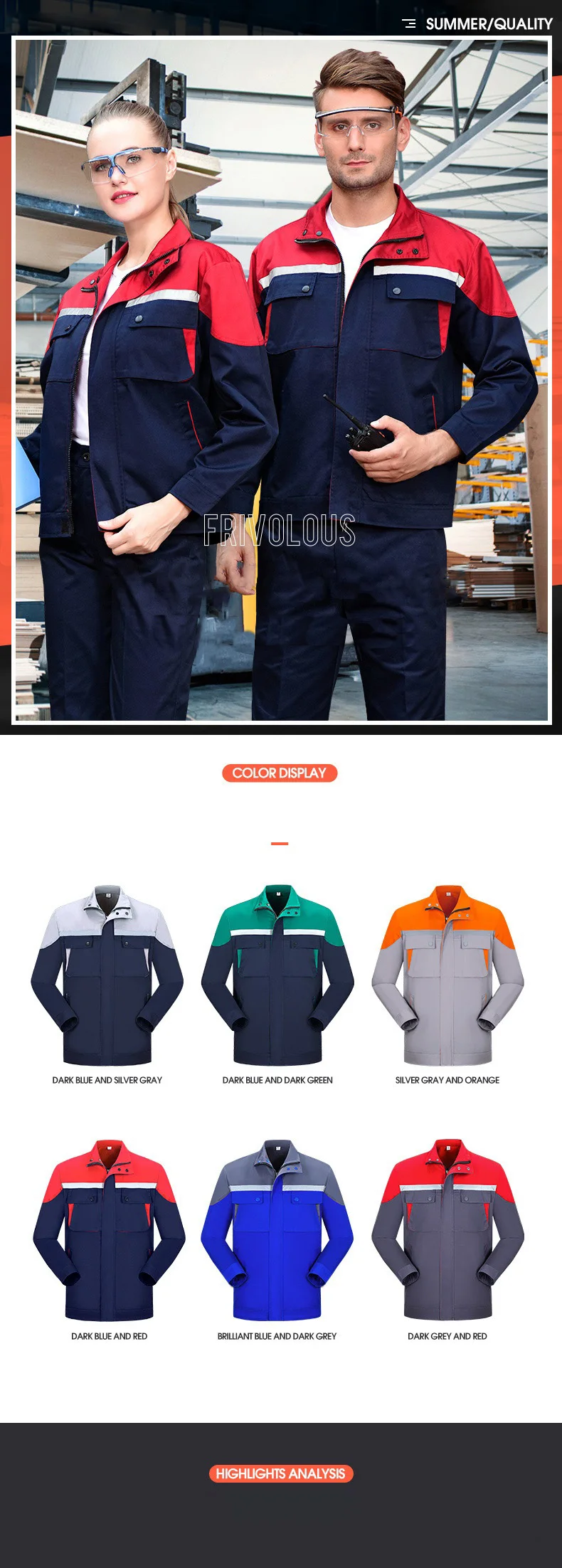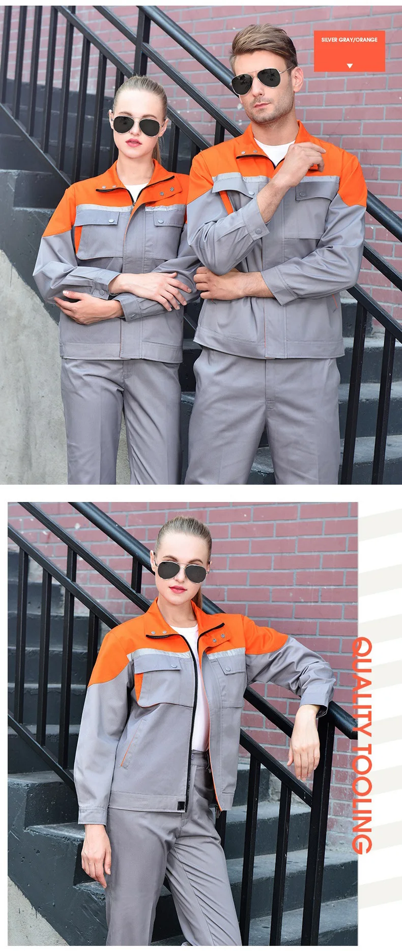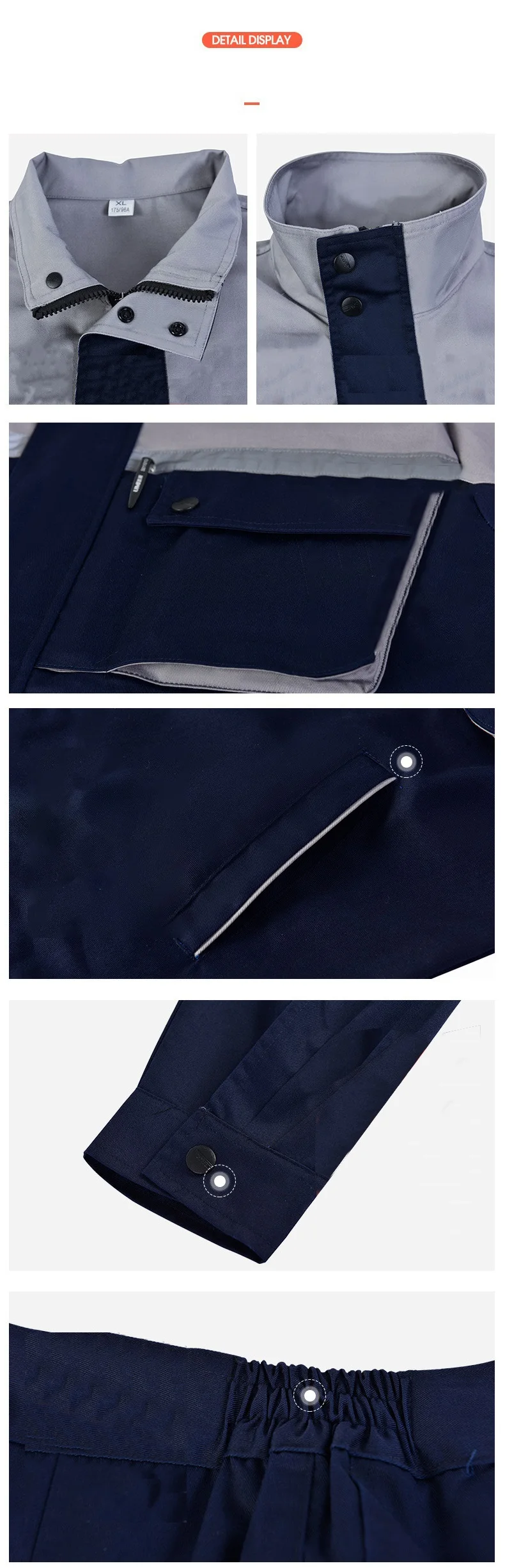 Conjunto de ropa de trabajo reflectante para primavera y otoño, chaqueta + pantalones para hombre y mujer, taller de soldador de reparación de máquina, uniforme general resistente al desgasteConjunto de ropa de trabajo reflectante para hombres y mujeres, chaqueta + pantalones, reparación de máquinas, taller de soldador, uniformes resistentes al desgaste, S-5XL