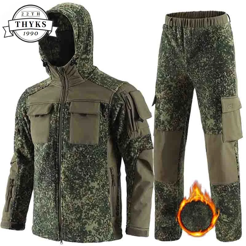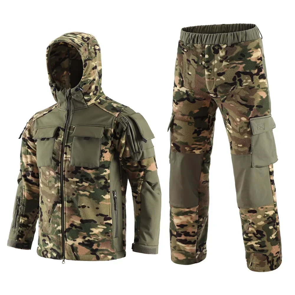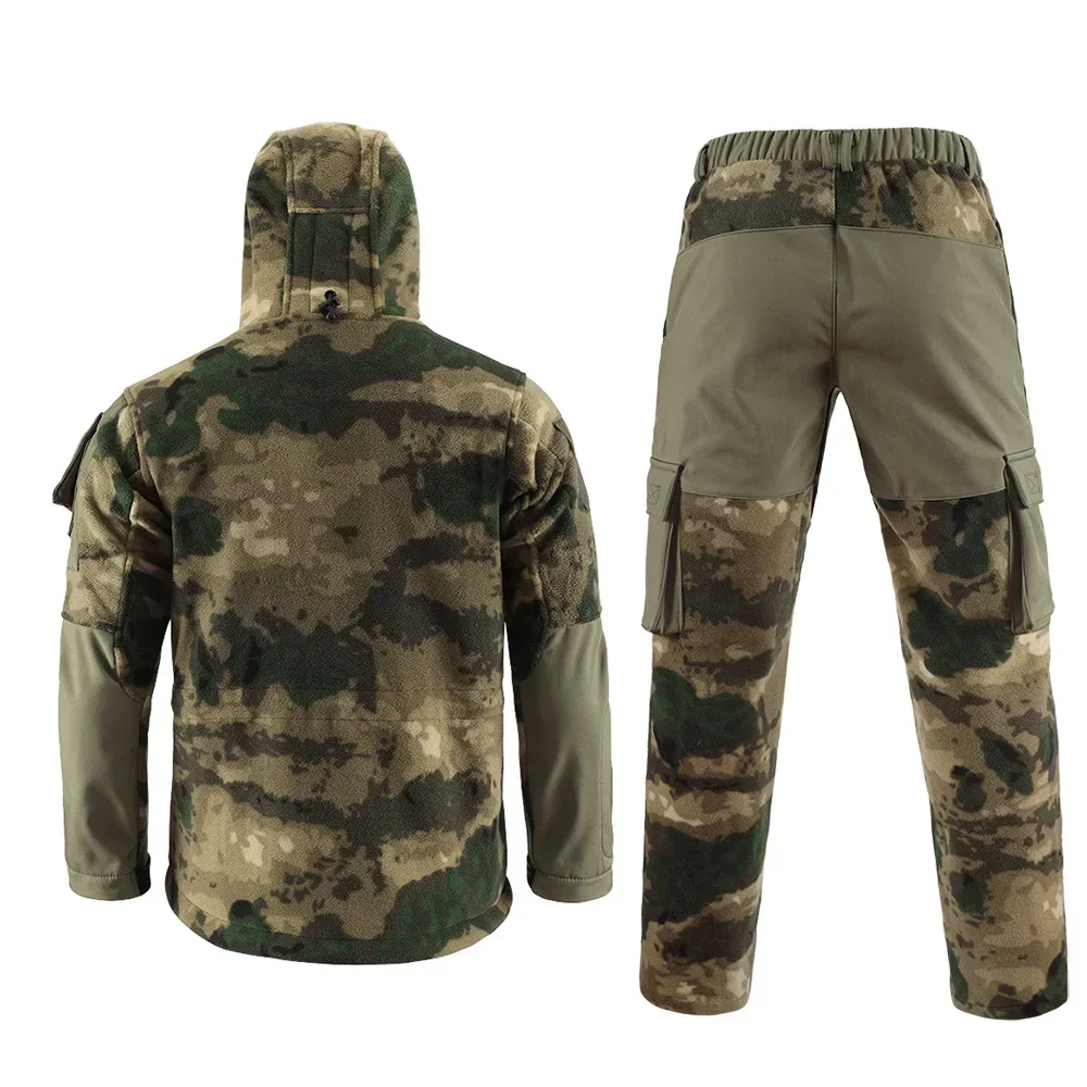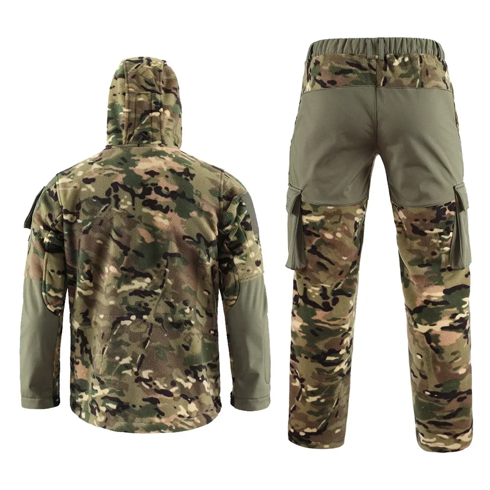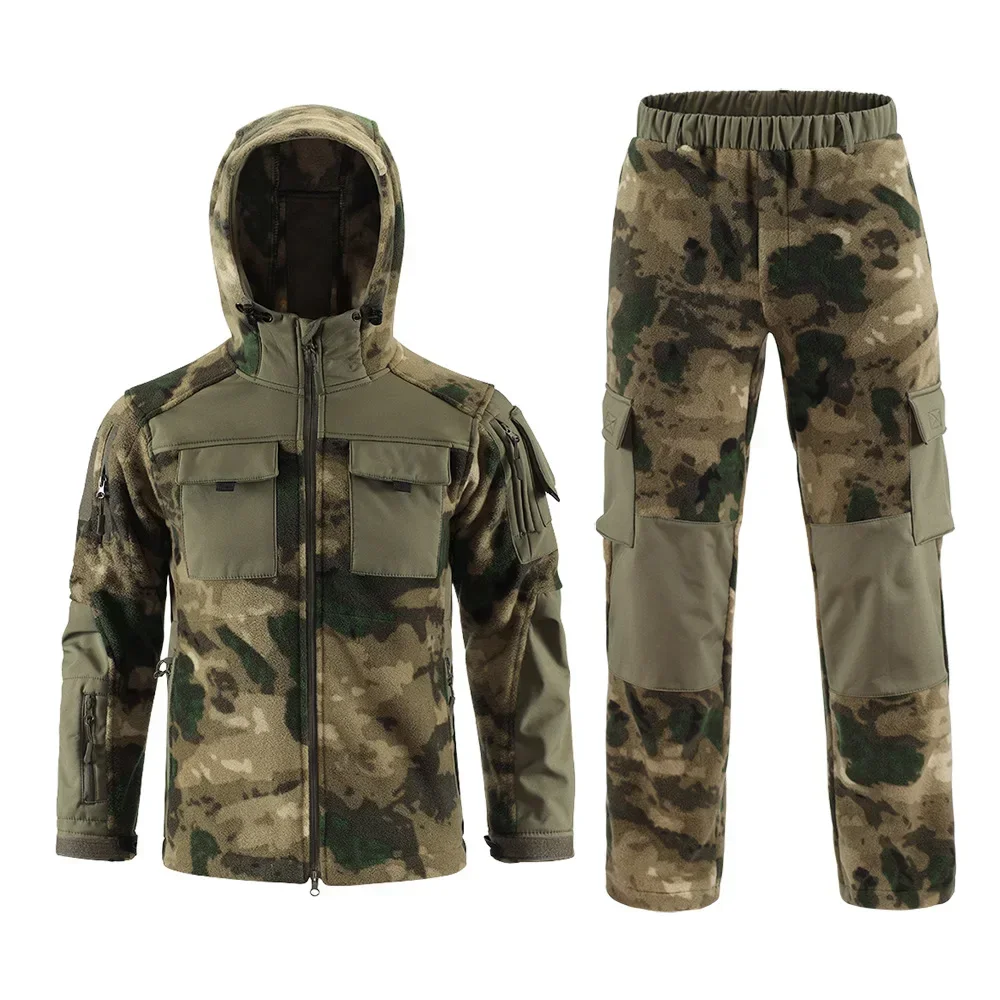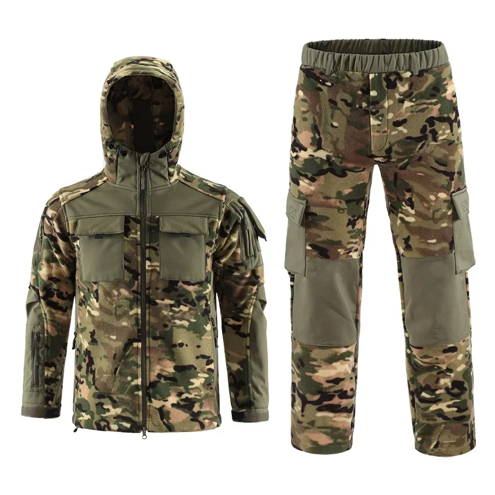 Conjunto táctico con capucha para hombre, chaqueta gruesa y cálida con múltiples bolsillos, pantalón de carga recto, traje militar impermeable para exteriores, Invierno