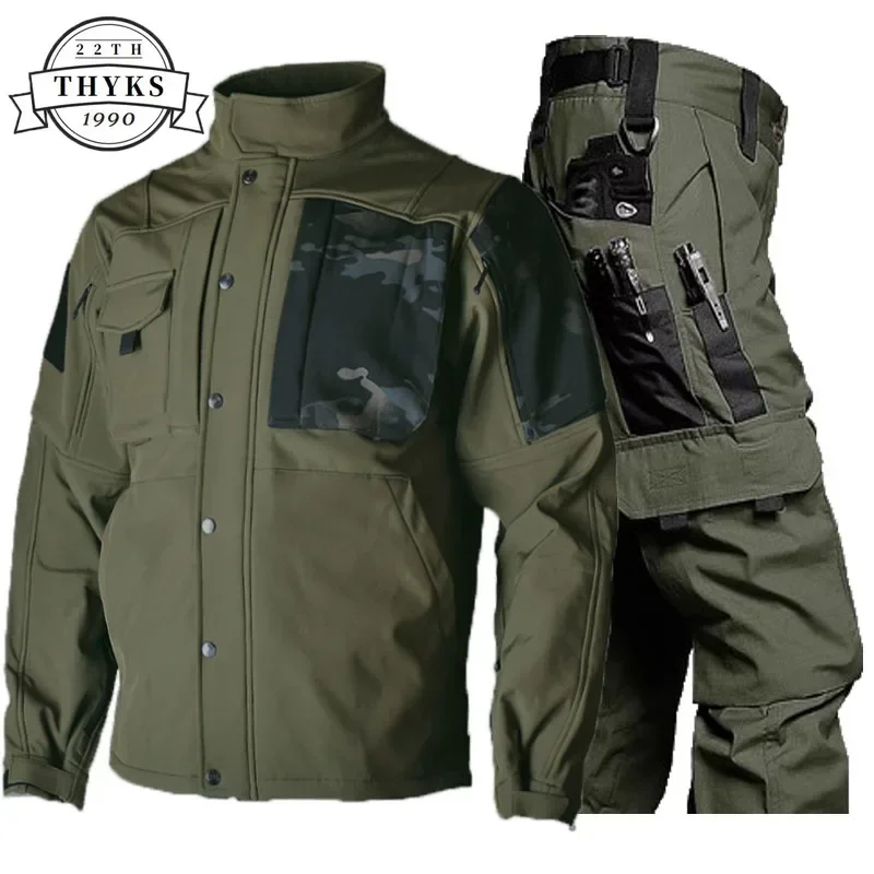Conjuntos tácticos de invierno para hombre, chaquetas a prueba de viento holgadas cálidas de forro polar suave militar, pantalón resistente al desgaste, traje de combate al aire libre de 2 piezas