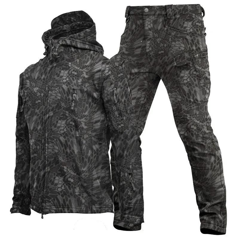 Conjunto táctico militar de piel de tiburón para hombre, chaqueta con capucha de concha suave, pantalones Cargo con múltiples bolsillos del ejército, trajes impermeables de 2 piezas, Invierno