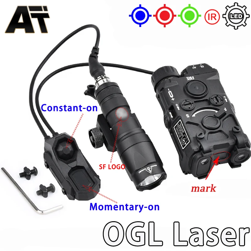 Conjunto Táctico OGL WADSN en Nylon - Funciones Completas Láser rojo + mira IR con modo estroboscópico Compatibilidad con linternas M600C/M300A Interruptor AXON para rieles Mlok/Keymod