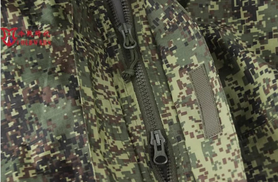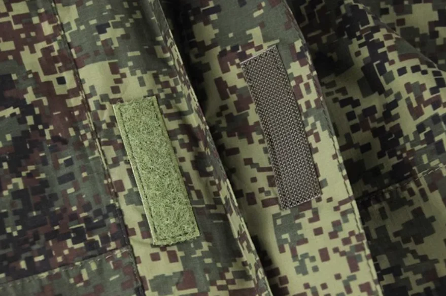 El traje está hecho de tela de nailon transpirable unidireccional de color de camuflaje digital EMR, que es resistente al viento e impermeable por fuera y por dentro, húmedo por dentro y por fuera. Al mismo tiempo, es ligero y compacto y resistente al desgaste y a la suciedad. Todas las costuras están equipadas con un adhesivo hermético, que puede evitar eficazmente que la lluvia y el polvo penetren. Puede prevenir fuertes lluvias y se puede usar como una simple ropa de protección química de emergencia. Ideal para actividades al aire libre con todo tipo de mal tiempo y uso diario.