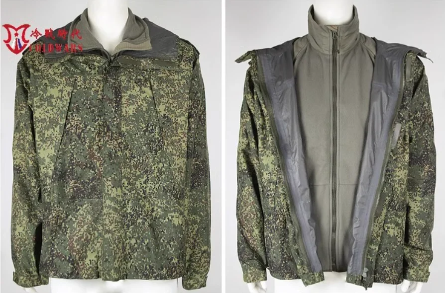 Conjunto de carcasa dura impermeable VKBO Iv6 para cabello público ruso. Este modelo es la sexta capa del sistema general de ropa VKB0 de las fuerzas armadas rusas. Como impermeable a prueba de viento, se usa en el exterior del Forro cálido y en el exterior del uniforme de combate, y se usa en entornos climáticos como fuertes vientos y fuertes lluvias.