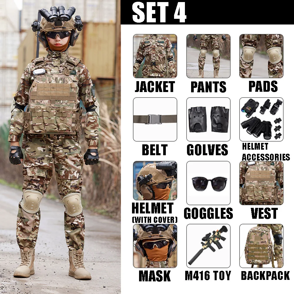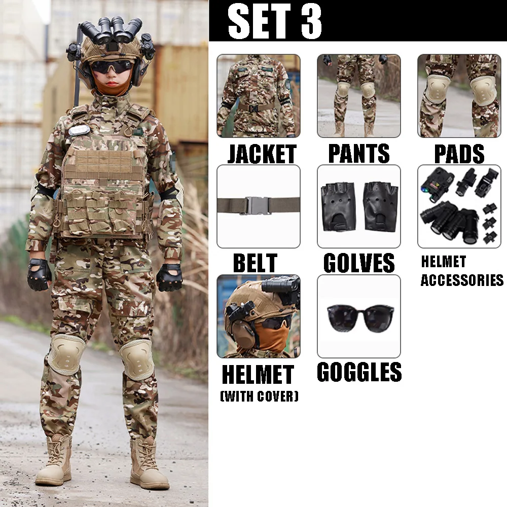 Conjunto de traje de entrenamiento táctico militar para niños, traje de camuflaje para niños, disfraces de soldado para niños, disfraz de fuerzas especiales para niños