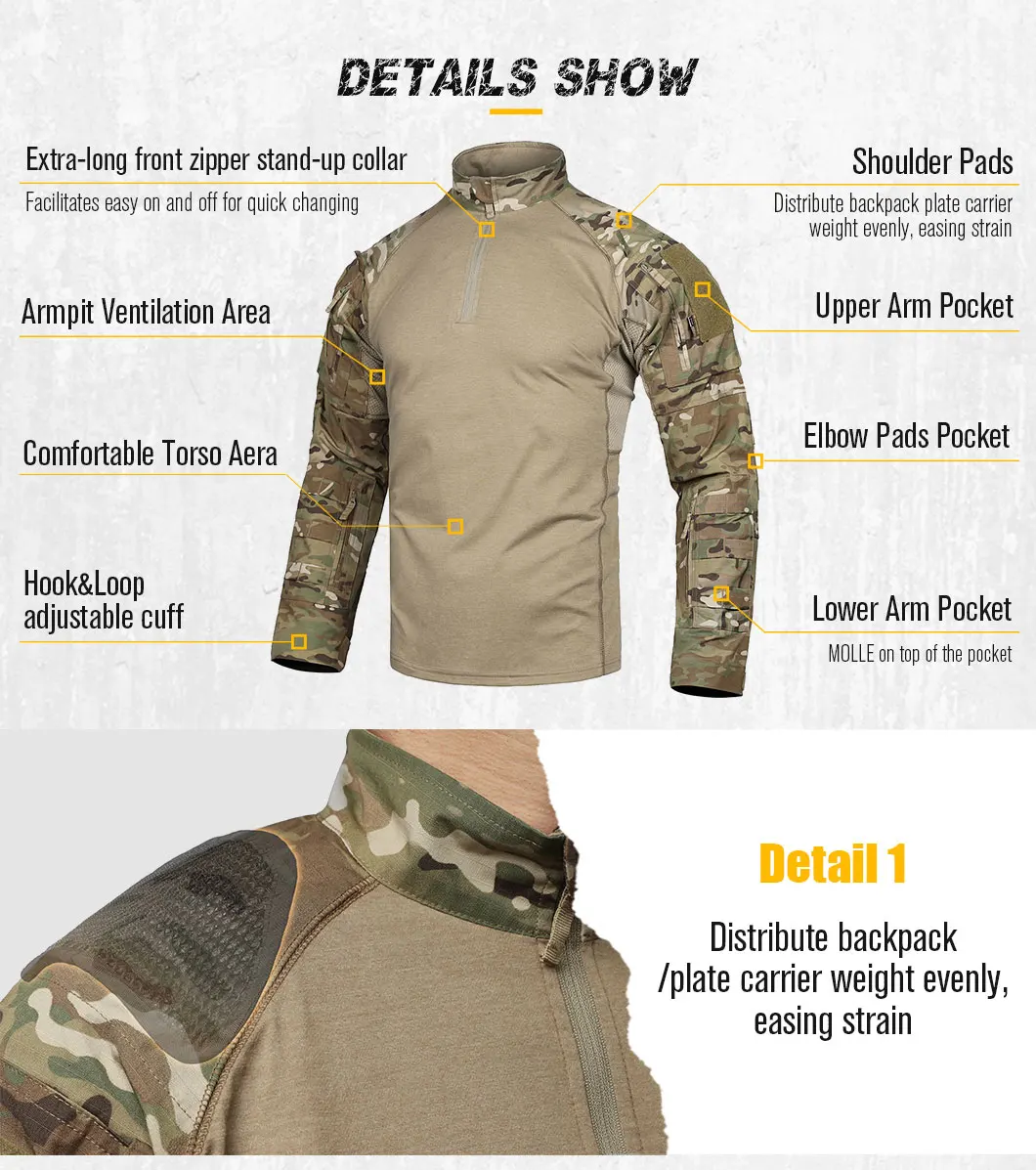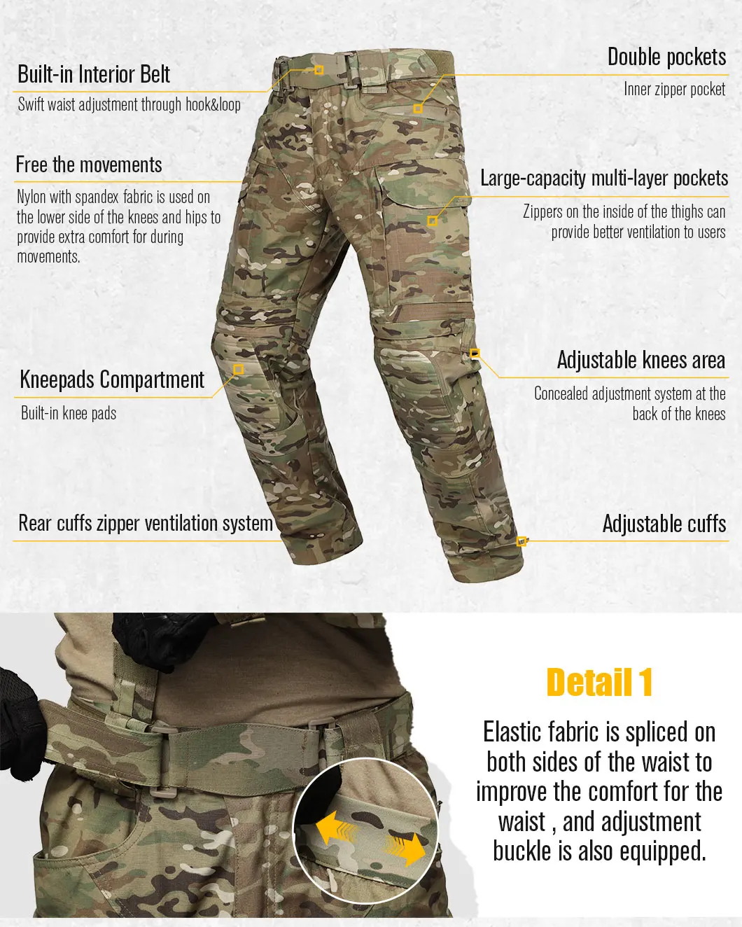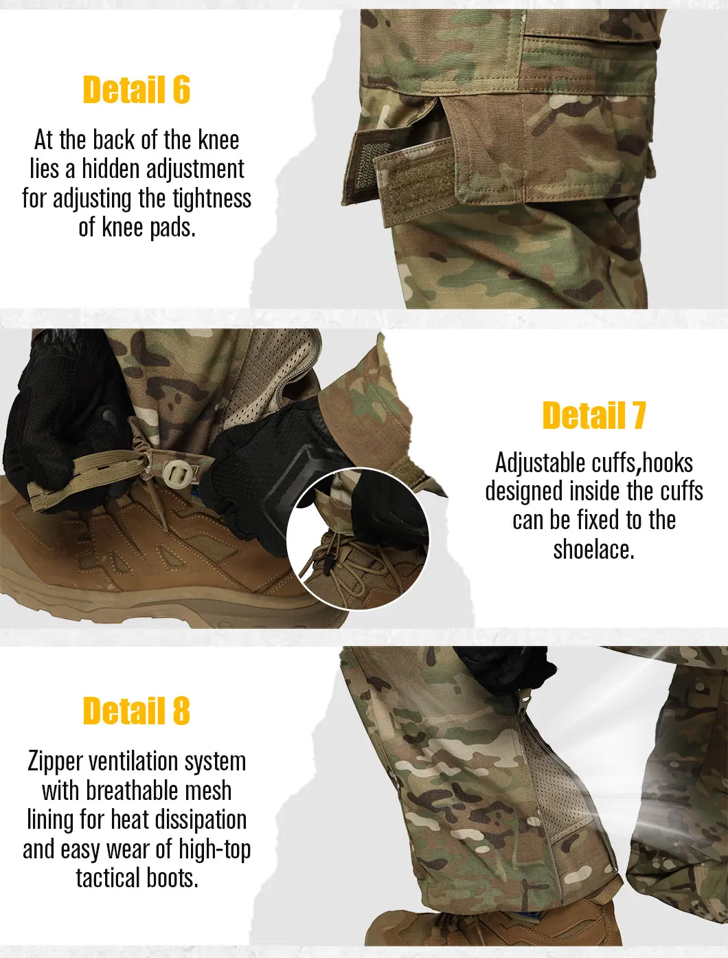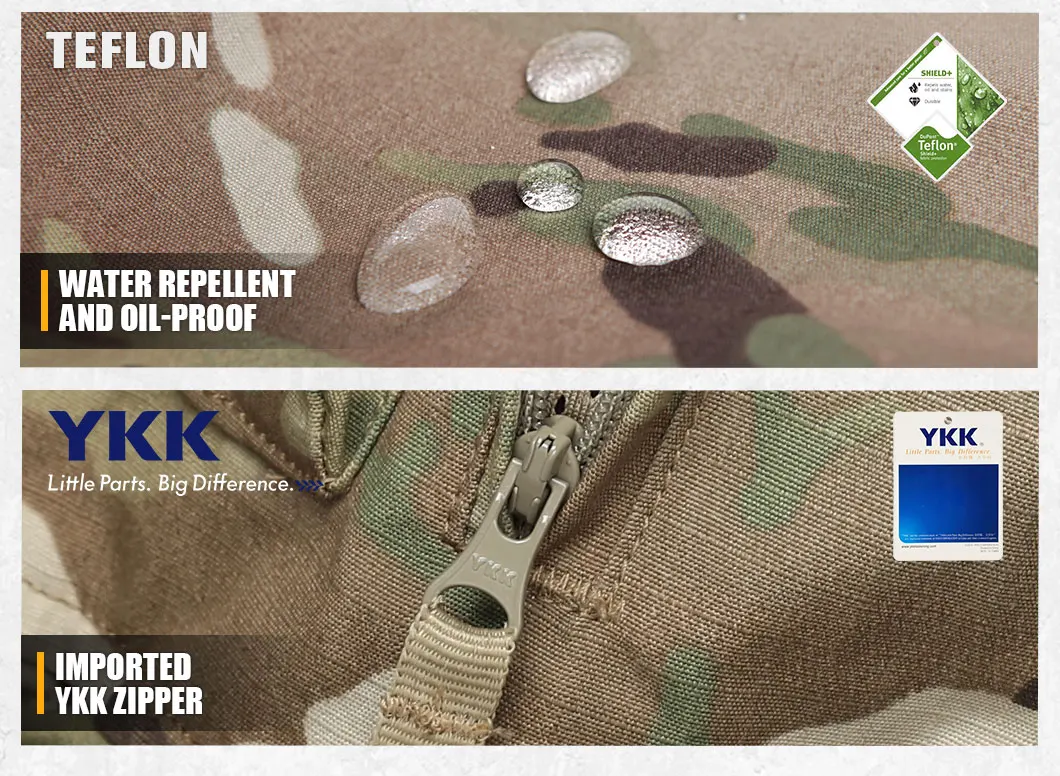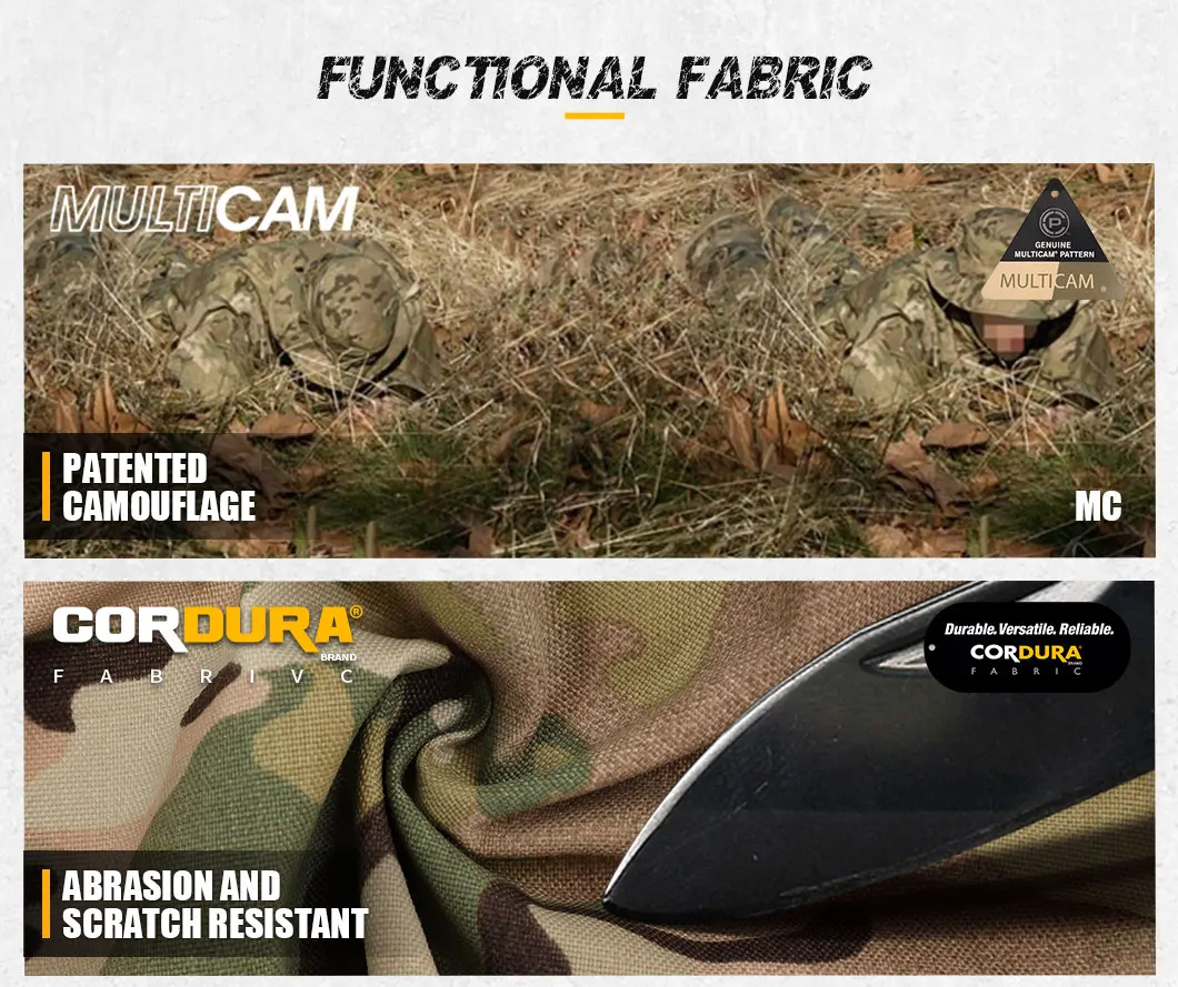 3.Cómodo de llevar: Tejido antiabrasión y de secado rápido en la zona del torso para mayor comodidad, incluso al usar chalecos portaplacas.