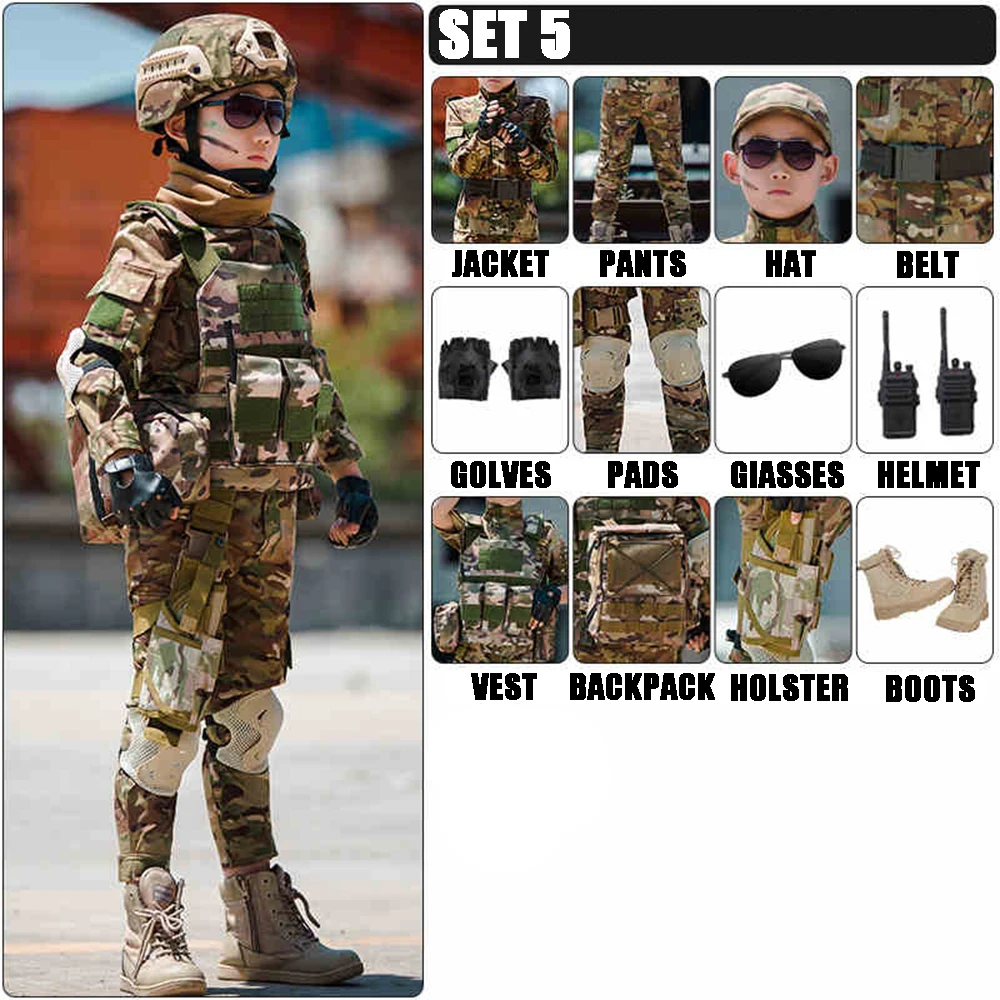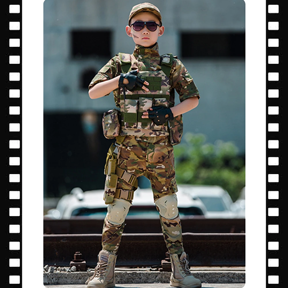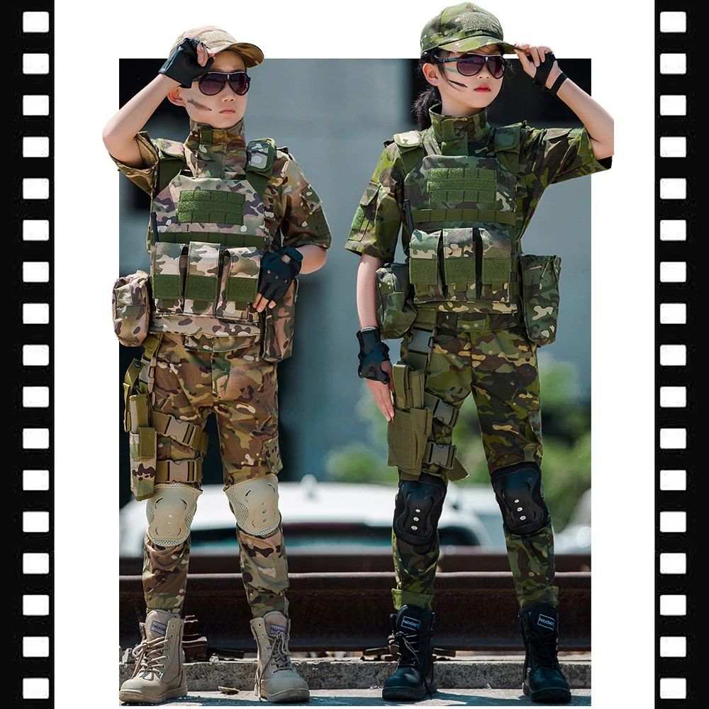 Conjunto de uniforme de entrenamiento de combate militar para niños, Top de camuflaje, pantalones, traje para niños y niñas, regalo, disfraz de fuerzas especiales para exteriores