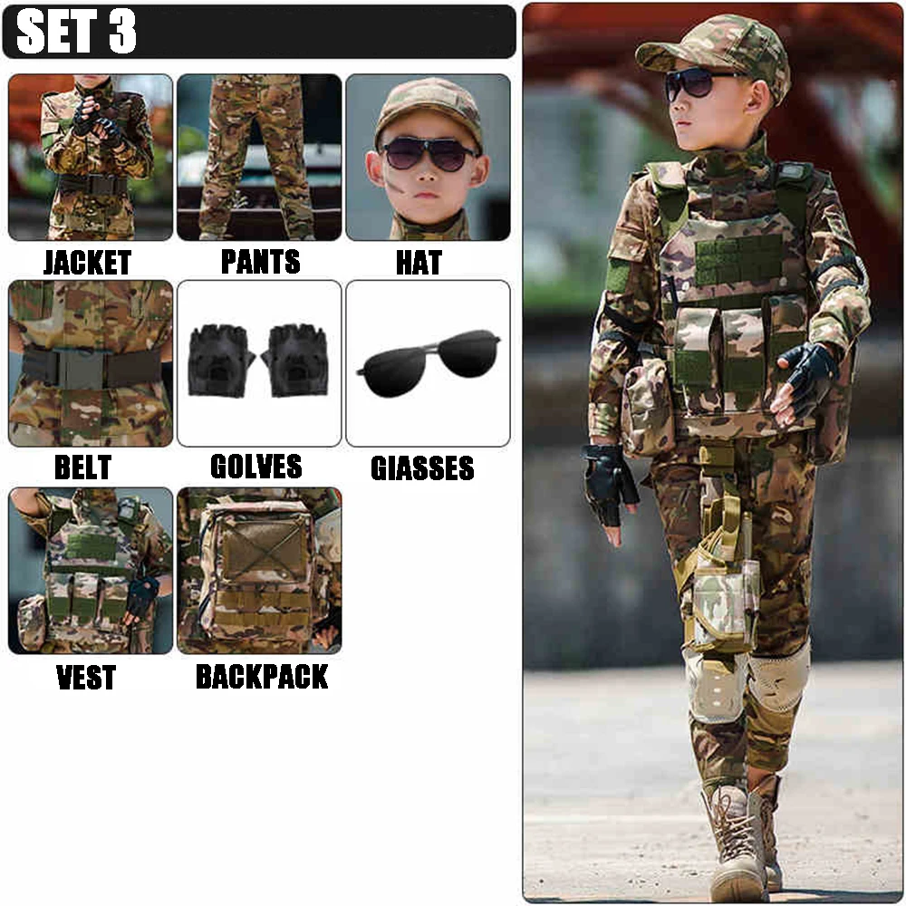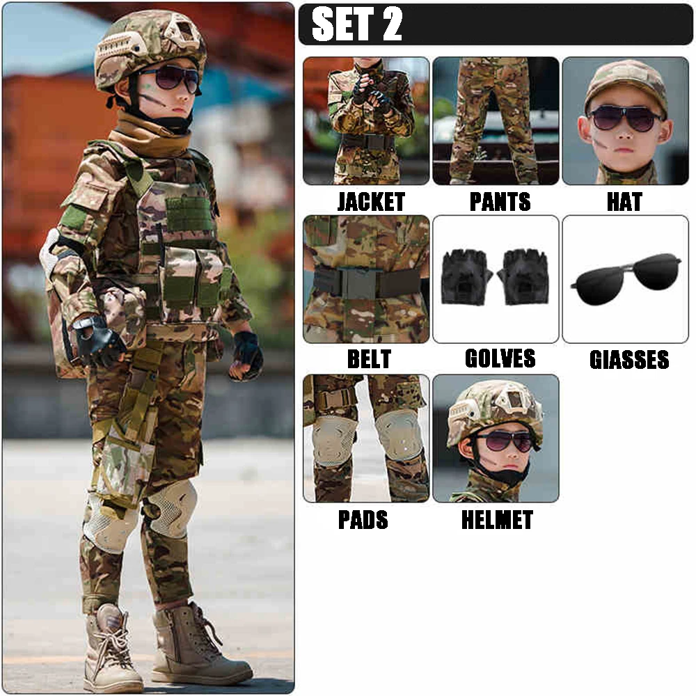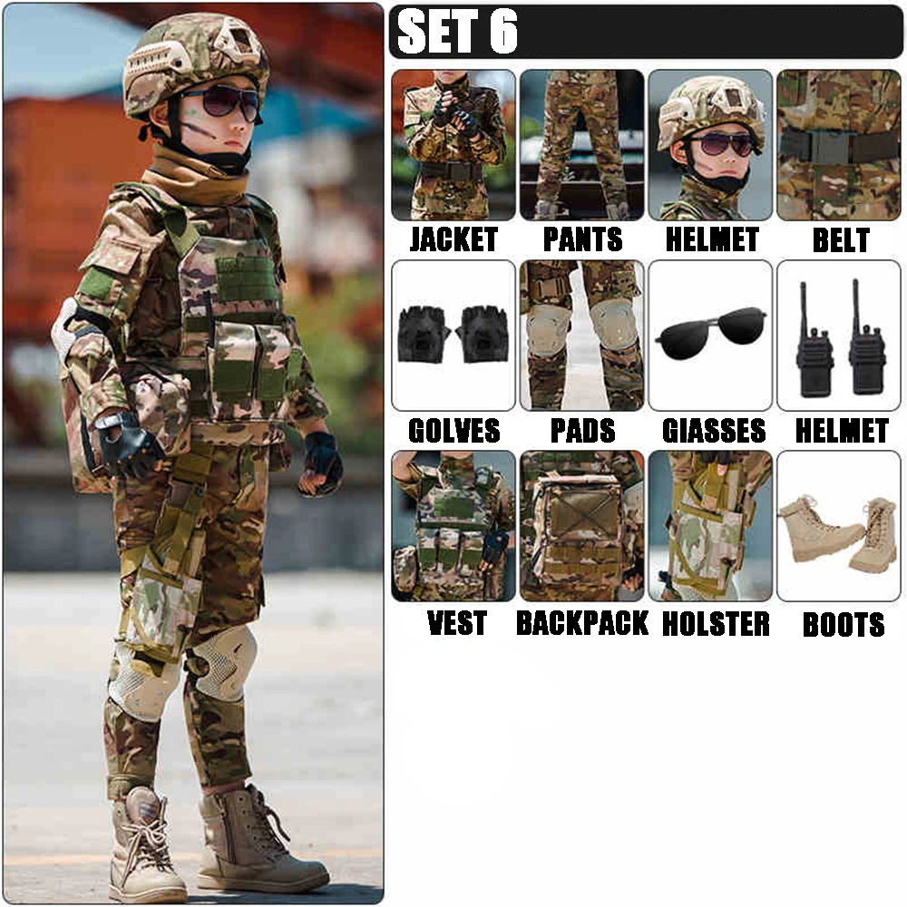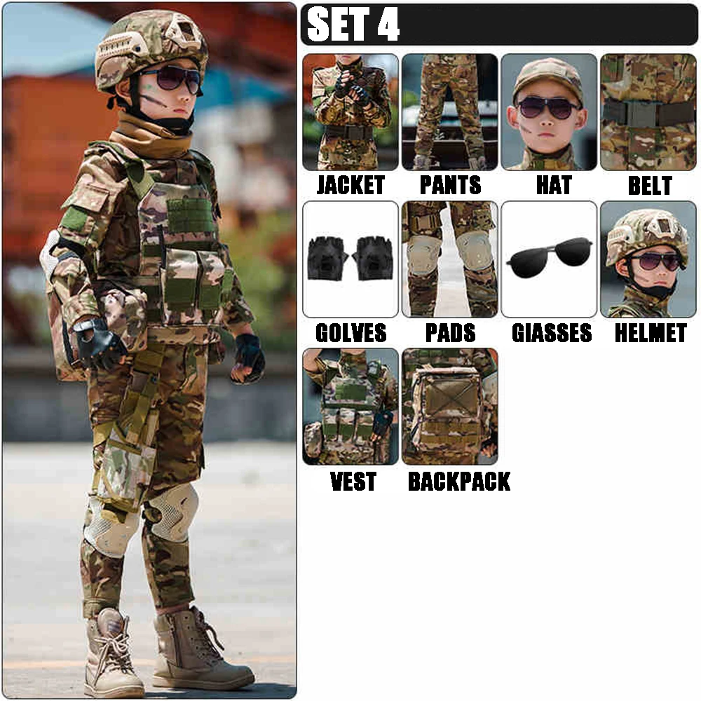 Conjunto de uniforme de entrenamiento de combate militar para niños, Top de camuflaje, pantalones, traje para niños y niñas, regalo, disfraz de fuerzas especiales para exteriores