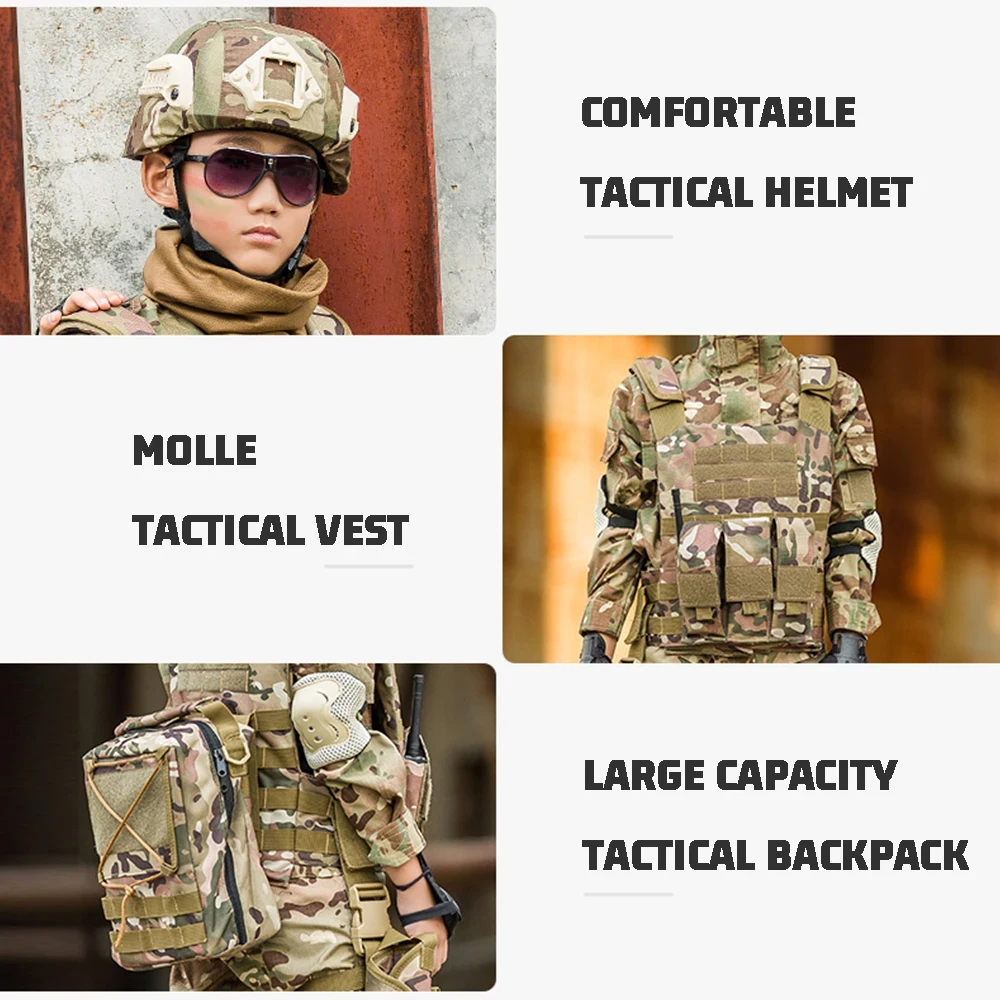 Conjunto de uniforme de entrenamiento militar al aire libre para niños, traje de pantalones superiores de camuflaje para niños, disfraz de combate de fuerzas especiales de la selva para niños y niñas